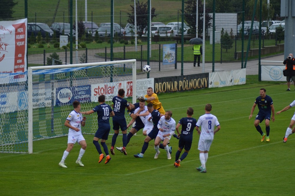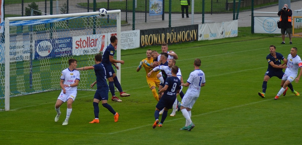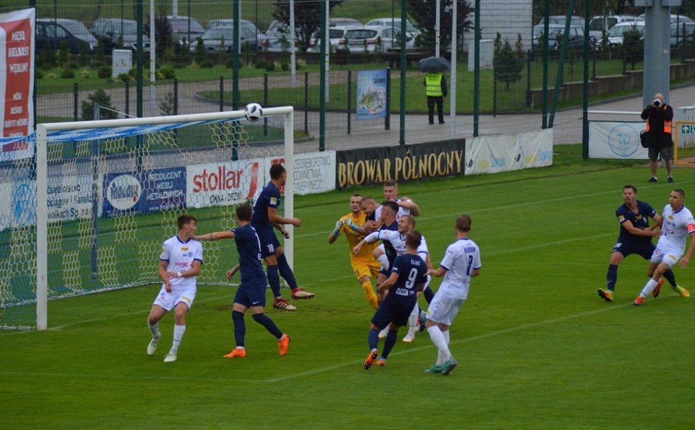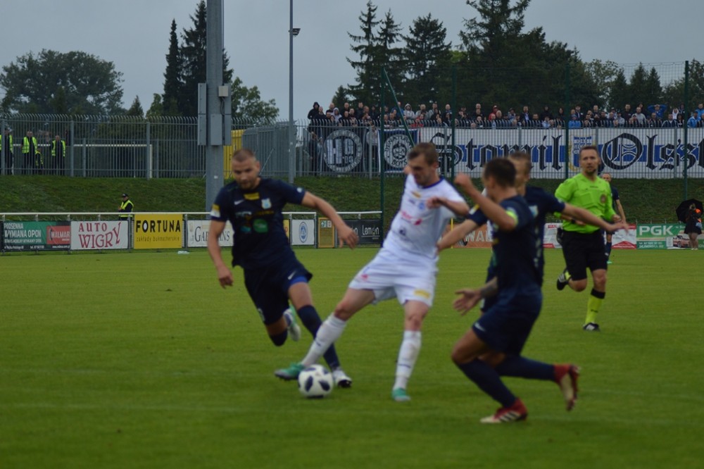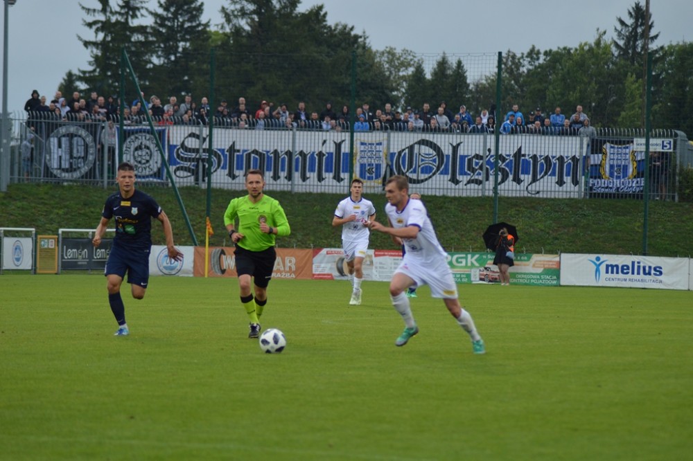 Olsztynianie napierali i zaczęli stwarzać sobie sytuacje. Piotr Głowacki huknął z wolnego tuż nad spojeniem lewego słupka i poprzeczki, a potem kapitalnej okazji nie wykorzystał Góral, po którego uderzeniu z 8 metrów piłka o centymetry minęła bramkę gospodarzy.