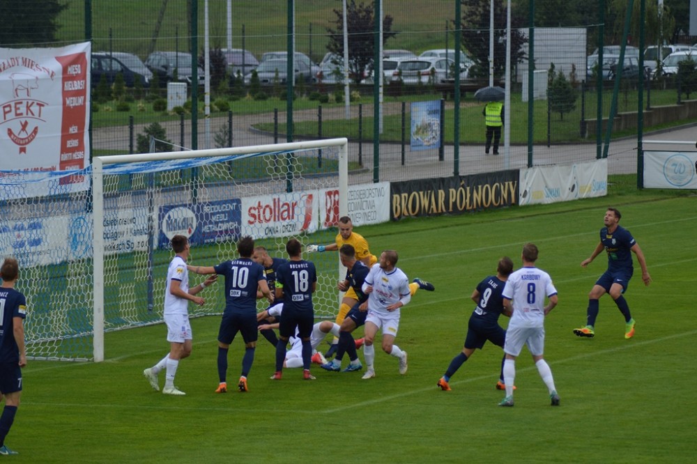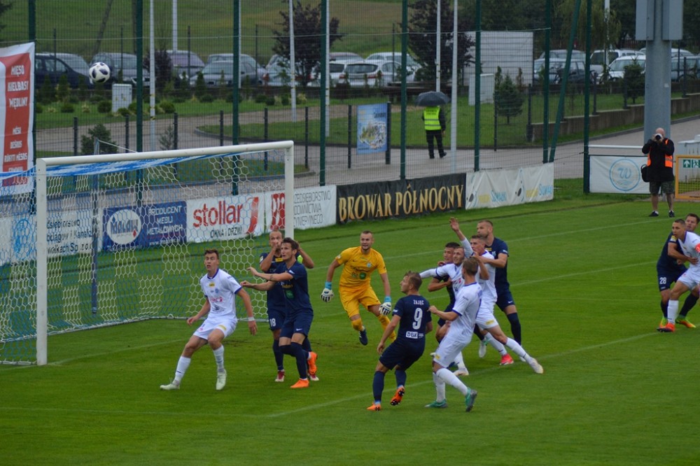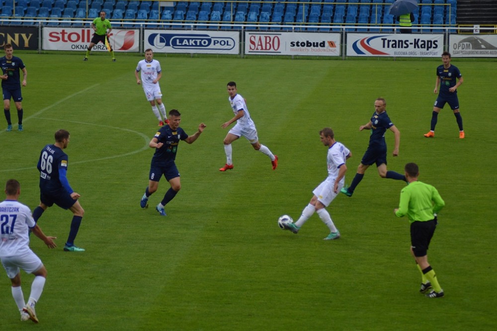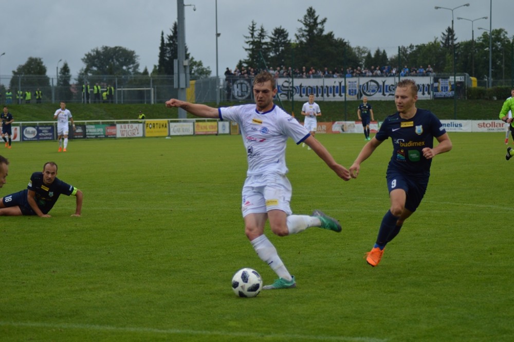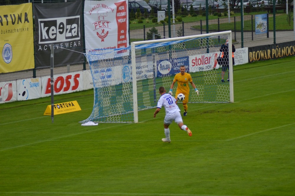 Olsztynianie napierali i zaczęli stwarzać sobie sytuacje. Piotr Głowacki huknął z wolnego tuż nad spojeniem lewego słupka i poprzeczki, a potem kapitalnej okazji nie wykorzystał Góral, po którego uderzeniu z 8 metrów piłka o centymetry minęła bramkę gospodarzy.
