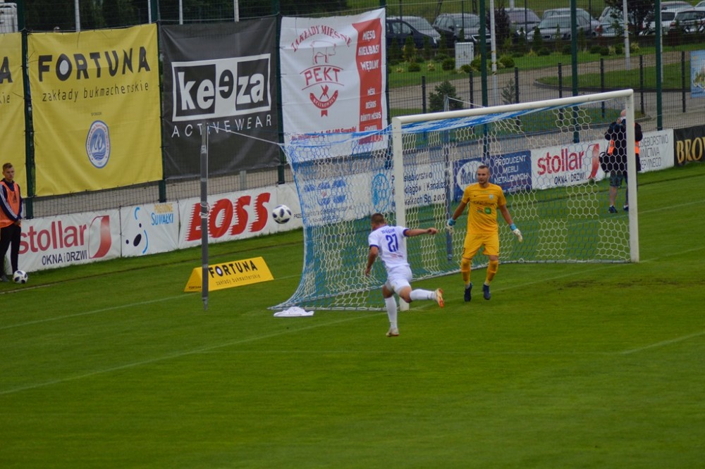 W 30 minucie Robert Barczak uderzył na bramkę z pola karnego, piłka odbiła się od obrońcy i spadla pod nogi Kamila Sabiłły. Napastnik Wigier z dużą pewnością siebie wykorzystał sytuację sam na sam z Michałem Leszczyńskim, z bliska wpakował piłkę do siatki.