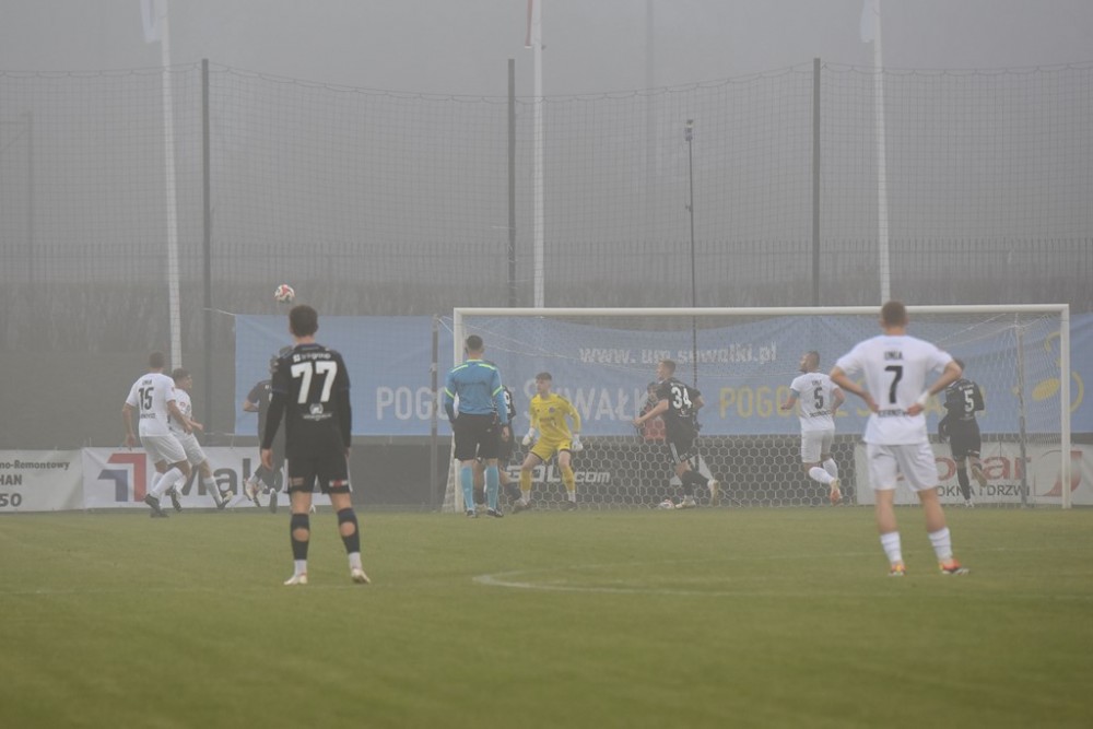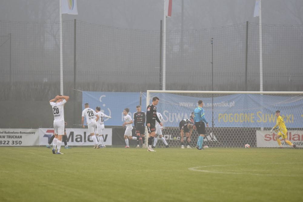 Minutę przed upływem regulaminowego czasu suwalski zespół ponownie zdobył kontaktowa bramkę. Maciej Makuszewski pięknie uderzył zza pola karnego. Piłka trafiła w poprzeczkę, odbiła się od pleców interweniującego Stanisława Pruszkowskiego i wpadla do siatki.
