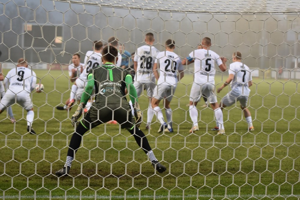 W doliczonym czasie najlepszą okazję miał Unia, ale kapitalną interwencją popisał się Michał Dębski.