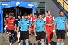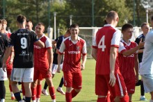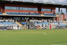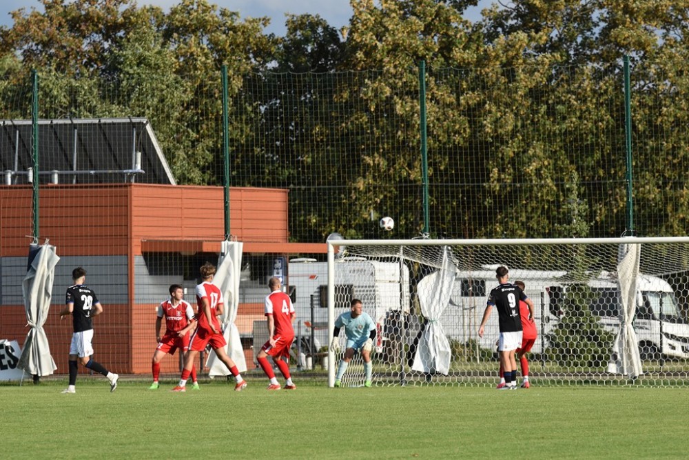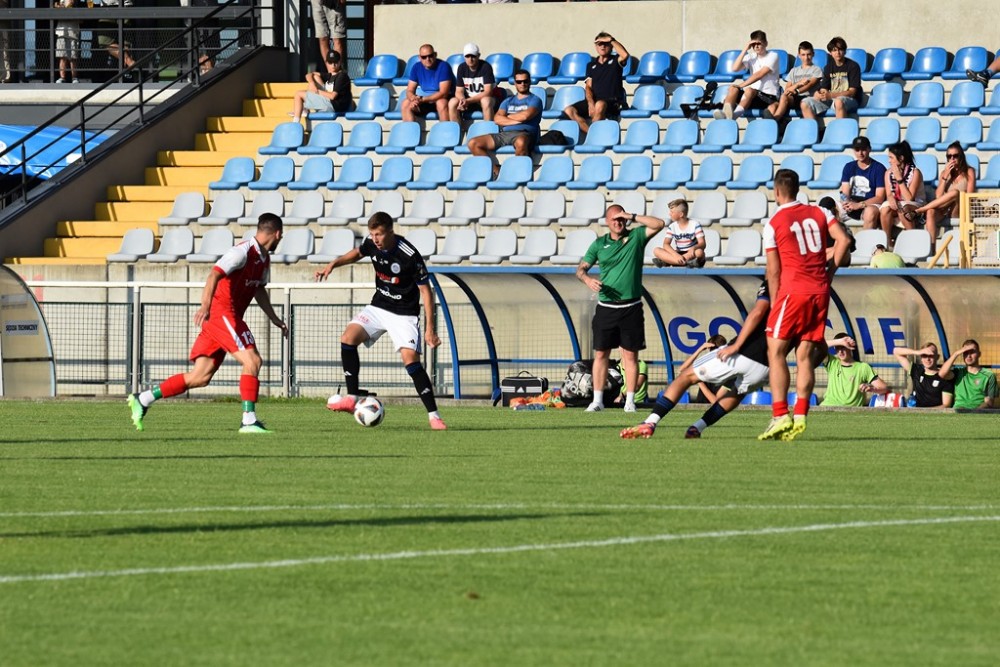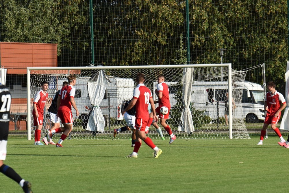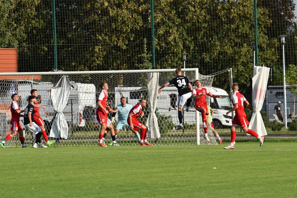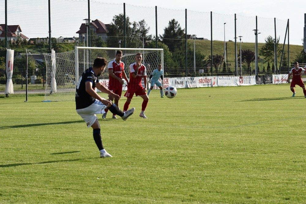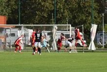 Niemal przez cały czas, co widać na zdjęciach, gra toczyla się na połowie gości. Na początku dwie dobre okazje miał Maciej Makuszewski, ale jego strzały zostały zablokowane. Po kwadransie „Maku” cieszył się już z gola, zdobytego z rzutu karnego. Na 2:0 tuż przed końcem pierwszej połowy podwyższył Filip Kozłowski.