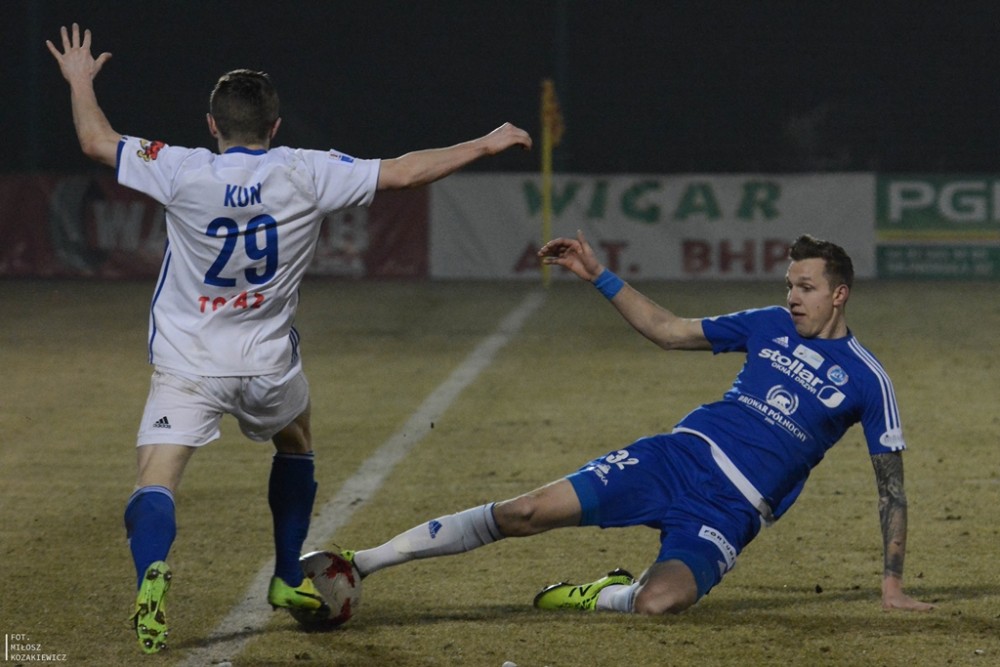- Kilku kolegów z kadry U-21 poznałem parę lat temu, z niektórymi graliśmy przeciwko sobie w I lidze – mówi Damian Gąska. – Powołanie traktuję jako wyróżnienie i bodziec do dalszej pracy. Ciągle się uczę – dodaje rozgrywający, który w sobotnim meczu z Pogonią Siedlce (na zdjęciach poniżej) był bliski zdobycia gola swoja słabszą, lewą nogą.