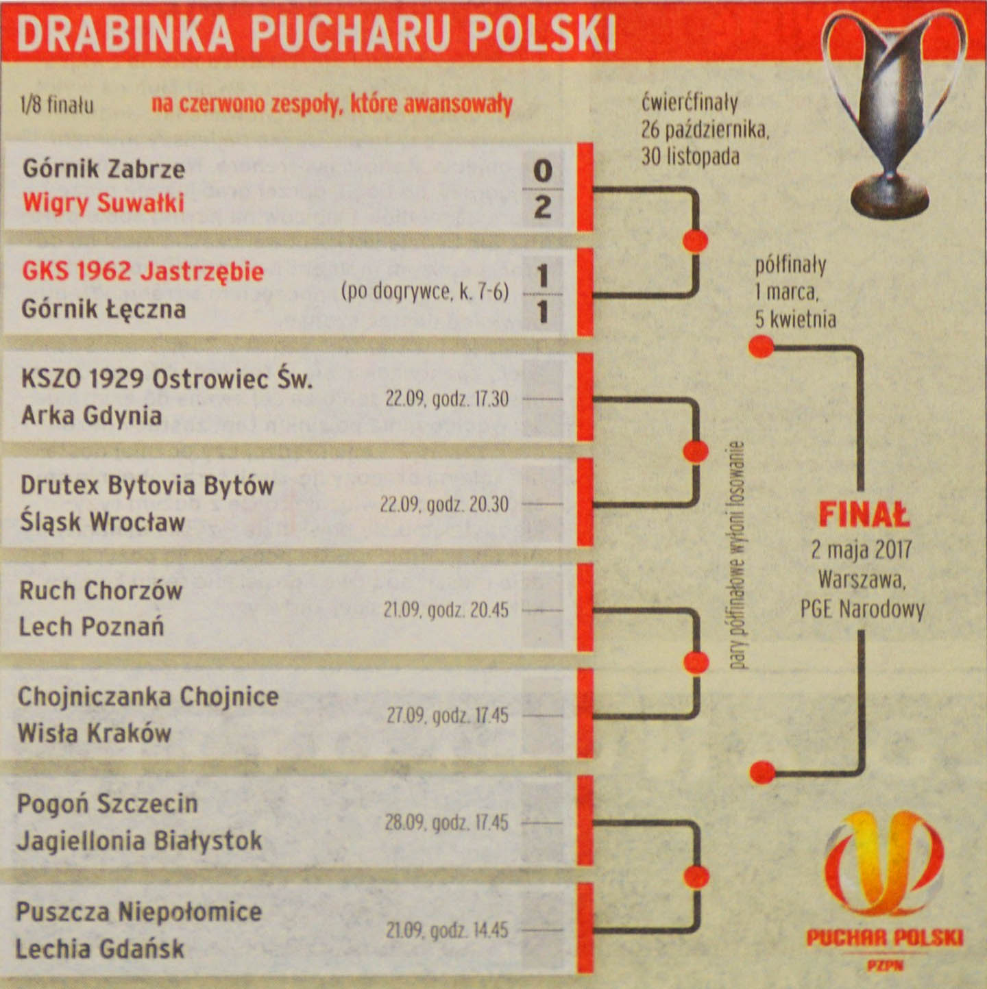 Podobne chwile chwały przeżywają piłkarze trzecioligowego GKS Jastrzębie, którzy po serii rzutów karnych wyeliminowali ekstraklasowy Górnik Łęczna i suwalski pierwszoligowiec, z którym zmierzą się w 26 października i 30 listopada w ćwierćfinałowym dwumeczu, nie jest im taki straszny. Biało-niebieskim, niestety, trudno będzie rozróżnić rywali, bo każdy piłkarz GKS ma nosić jednakową fryzurę.