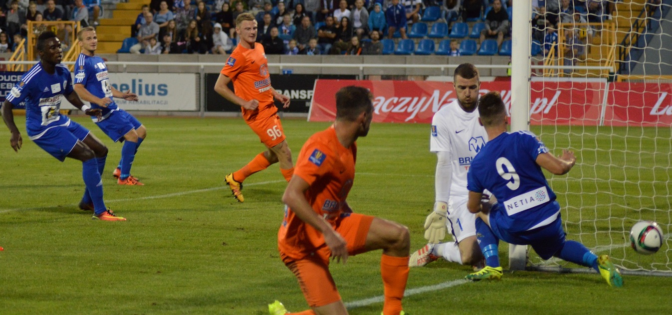 Marsz do 1/8 finału PP biało-niebiescy rozpoczęli jeszcze w poprzednim sezonie, od zajęcia miejsca w czołowej „10” I ligi. Dzięki temu rozpoczęli rozgrywki nie od wstępnej, a od I rundy, w której wygrali 1:0 z trzecioligowym Świtem w Nowym Dworze Mazowieckim. W 1/16 finału na Zarzeczu pokonali 2:1 ekstraklasową Termalicę Nieciecza (na zdjęciu). 20 września postarają się o kolejną sympatyczną niespodziankę w Zabrzu. Cztery dni później, 24 września Górnik przyjedzie do Suwałkach i w meczu 10. kolejki I ligi dojdzie do rewanżu za pucharową potyczkę.