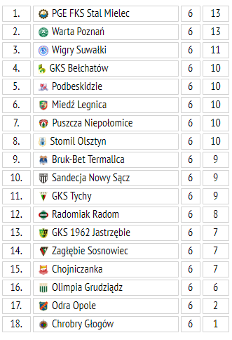 W poniedziałkowym meczu zamykającym 6. kolejkę Fortuna 1 Ligi spotkali się faworyci do awansu. Stal Mielec pokonała spadkowicza, Miedź Legnica 1:0 i wysunęła się w tabeli przed Wartę Poznań i Wigry Suwałki.