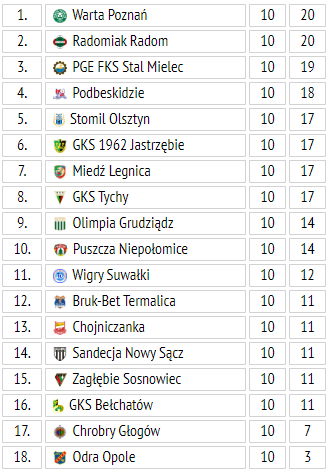 To nie jedyna niespodzianka 10. kolejki. Do takich na pewno trzeba zaliczyć domowe porażki Zagłębia Sosnowiec, Chojniczanki Chojnice, Bruk-Betu Termaliki i Sandecji Nowy Sącz.