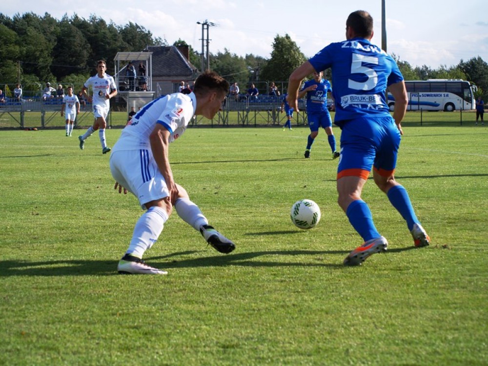 W przegranym 1:2 Å›rodowym spotkaniu z rywalem z ekstraklasy biaÅ‚o-niebiescy nie ustrzegli siÄ™ błędów, zwÅ‚aszcza w obronie, no i powinni być skuteczniejsi. Kamil Adamek zademostrowaÅ‚ Å‚adne akcje w parze z pozyskanym z Radomiaka Mateuszem Radeckim, ale gole po nich nie padÅ‚y.