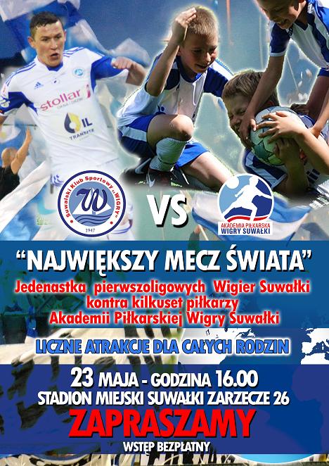 Gorycz przegranej drużyna Zbigniewa Kaczmarka osłodzi sobie już w najbliższy weekend i to dwukrotnie. Najpierw, po wycofaniu się Floty Świnoujście dopisze sobie trzy punkty walkowerem, a w sobotę o godz. 16 na stadionie przy ul. Zarzecze spotka się z ekipą Akademii Piłkarskiej Wigry Suwałki. Będzie to największy mecz świata, po przeciwko pierwszoligowcom stanie kilkuset najmłodszych adeptów futbolu. Tłoczno też będzie na trybunach, bo sympatycy Wigier i piłki nożnej pojawią się na nich całymi rodzinami. Dla wszystkich suwalski klub przygotował mnóstwo atrakcji. Wstęp na piłkarski piknik bezpłatny.