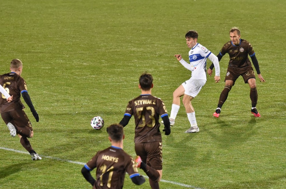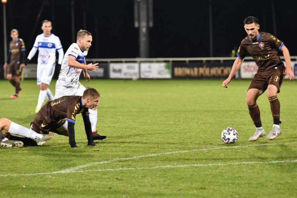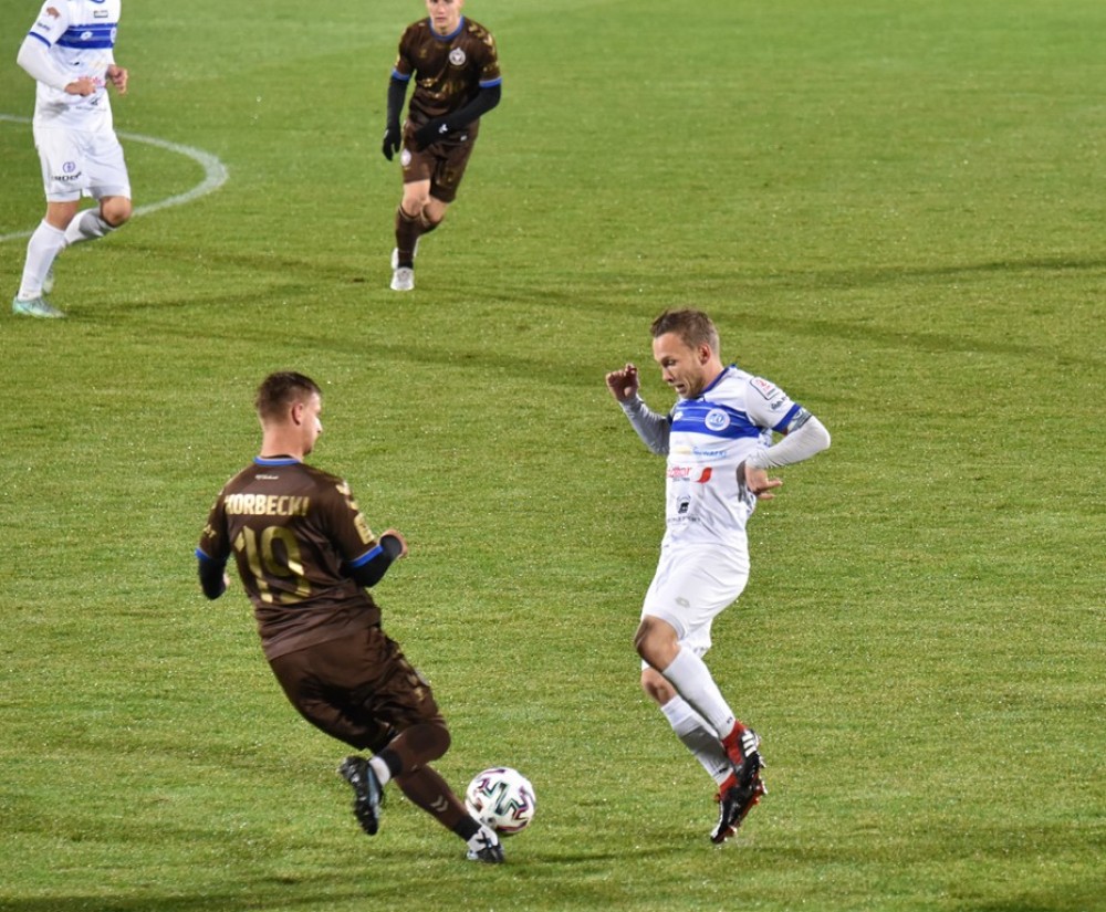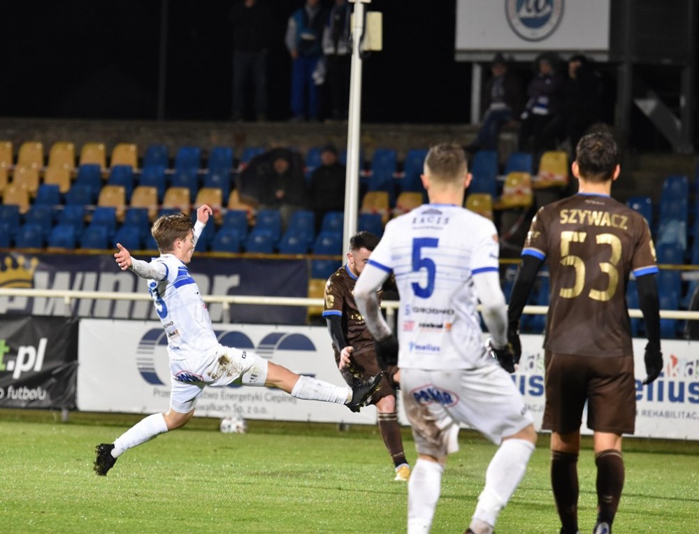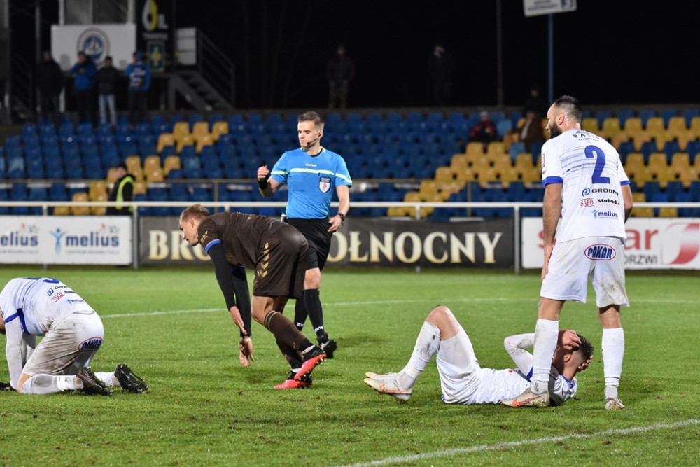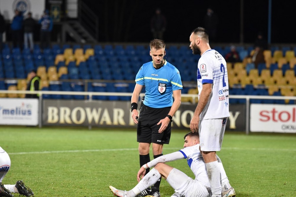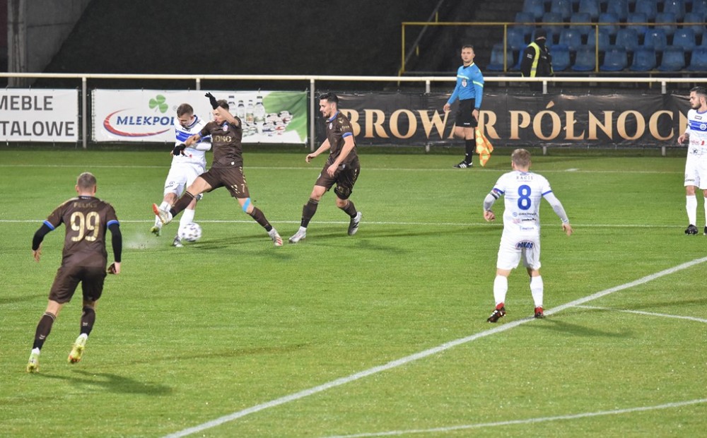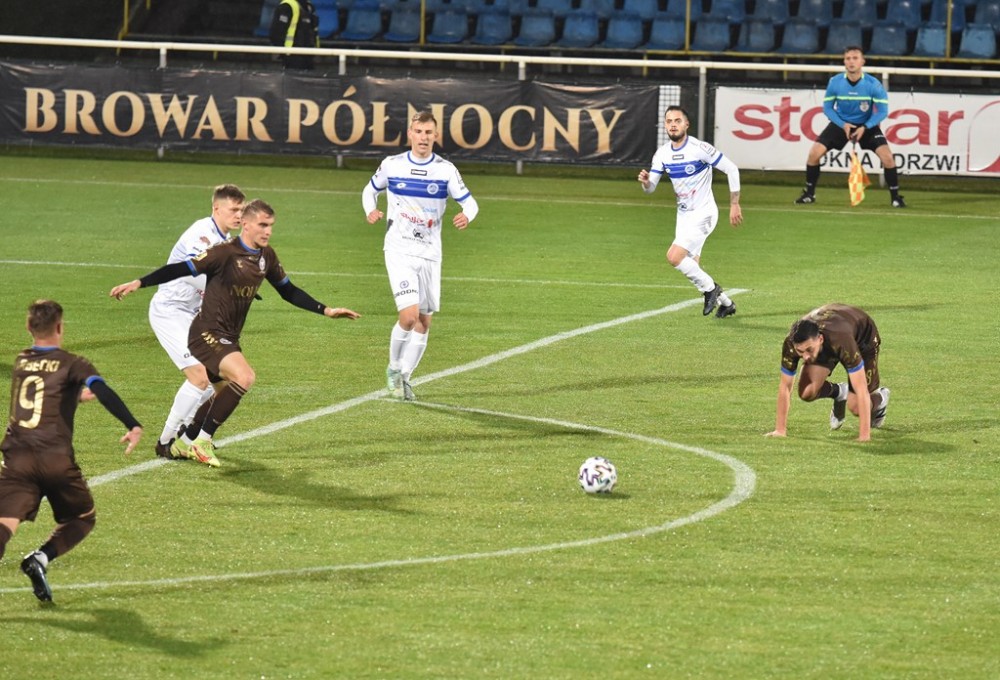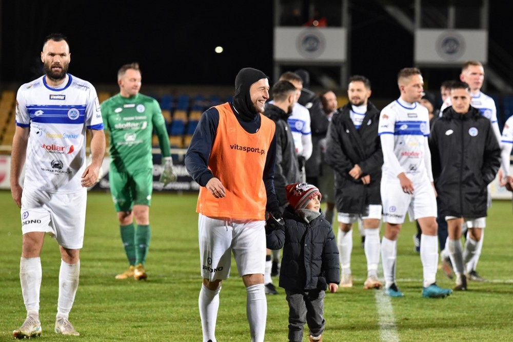 W sobotę Biało-Niebieskich wyprzedziła Olimpia Elbląg, która zremisowała z Chojniczanką Chojnice oraz Wisła Puławy, po wygranej z Pogonią Siedlce.