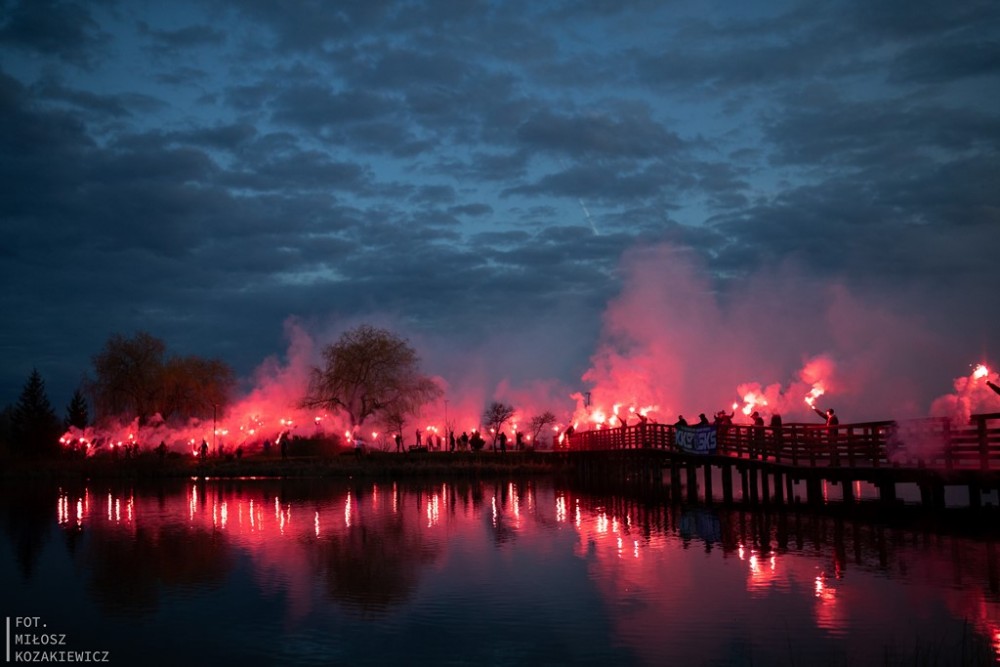 Nie zabrakÅ‚o też kibiców, którzy gÅ‚oÅ›no dopingowali drugoligowÄ… drużynÄ™ w meczu z zaprzyjaźnionÄ… GranicÄ… KÄ™trzyn, a potem odpalili race na wyspie i bawili siÄ™ na koncercie Piotra Karpieni.