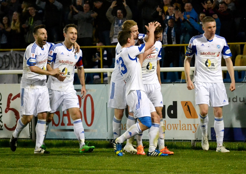 W sobotę wieczorem biało-niebiescy chcą pokonać drużynę z Legnicy i razem z kibicami cieszyć się z pozostania na zapleczu ekstraklasy. Utrzymanie mają pewne już dzisiaj, bo po wycofaniu się Floty Świnoujście, z I ligi spadną tylko trzy drużyny.
