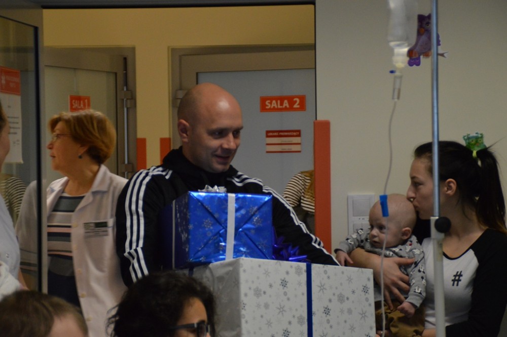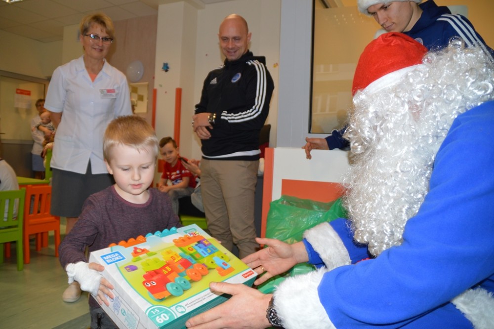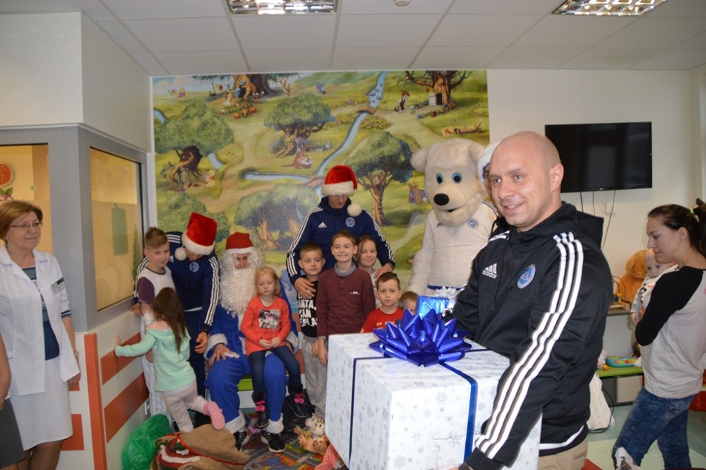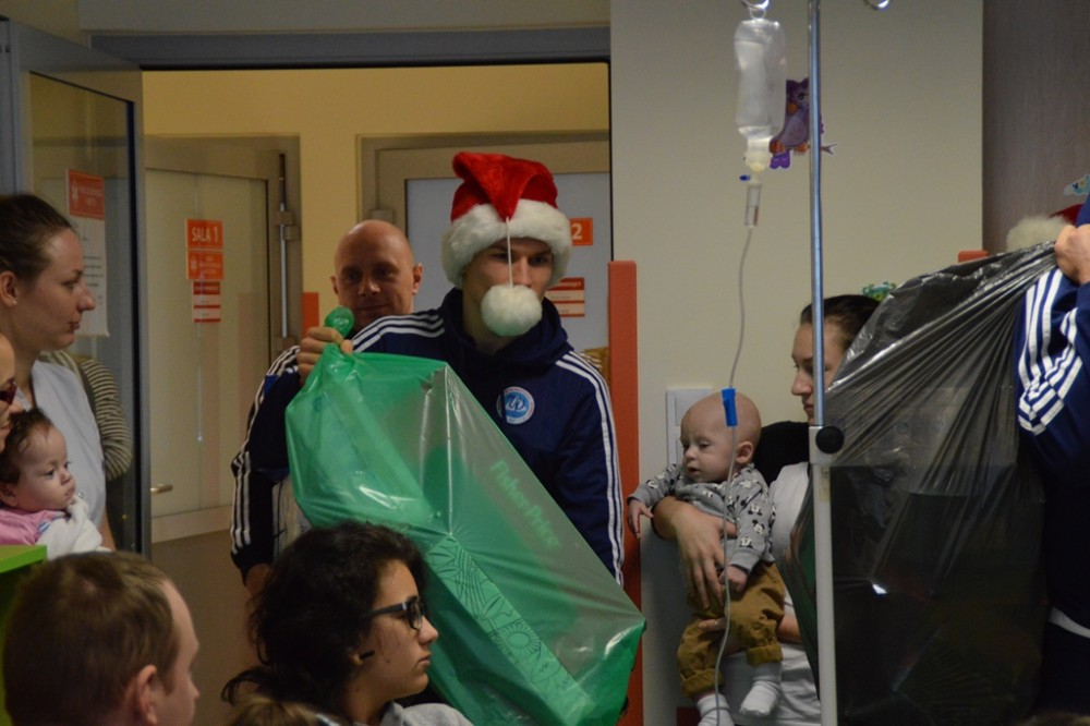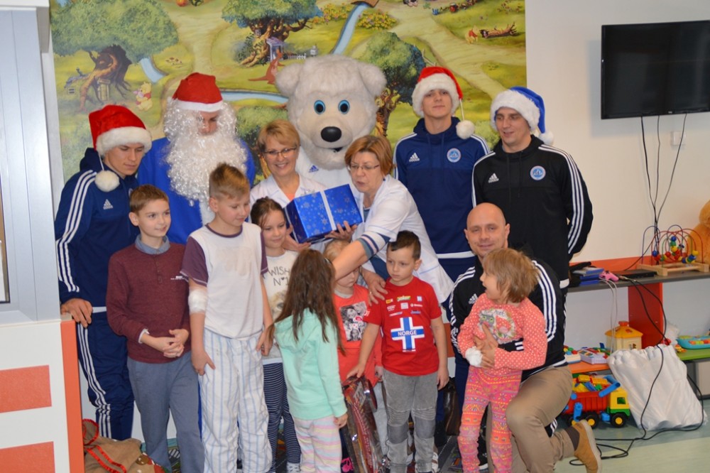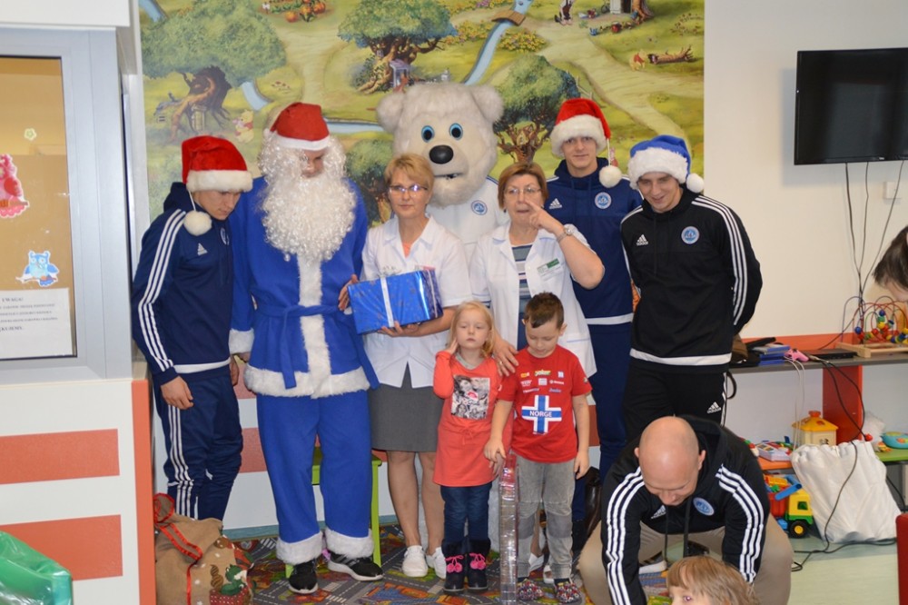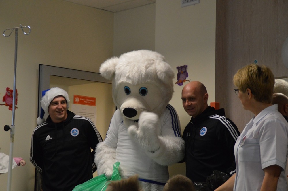 Pierwszoligowi piÅ‚karze Damian GÄ…ska i Maciej Radaszkiewicz, ich trener Artur Skowronek oraz szkoleniowiec drużyny rezerw Kamil Lauryn odwiedzili chore dzieci w towarzystwie Åšwietego MikoÅ‚aja i Wigierskiego Misia. ByÅ‚y wierszyki, piosenki, wspólne fotografie. Mali pacjenci w wieku od kilku miesiÄ™cy do 15 lat otrzymali upominki, zabawki, gry i sÅ‚odycze.