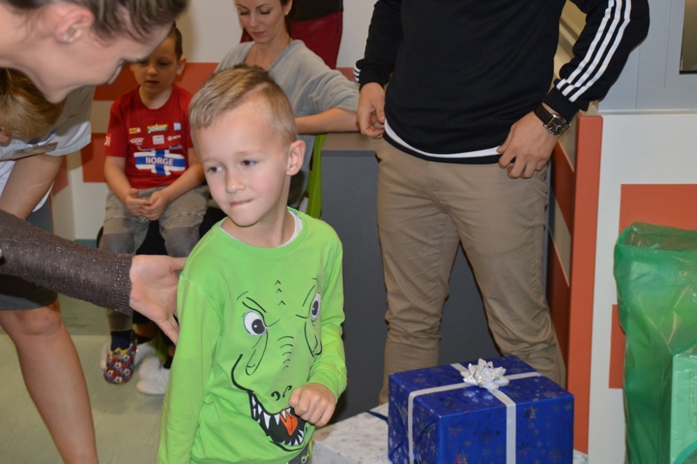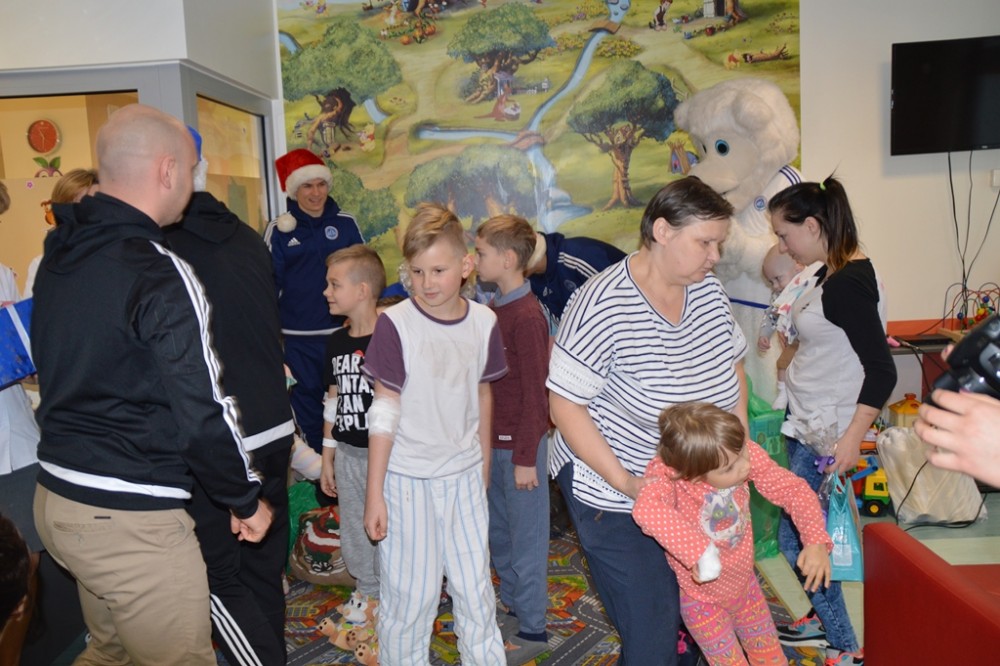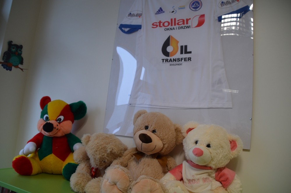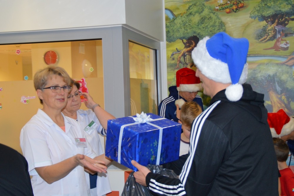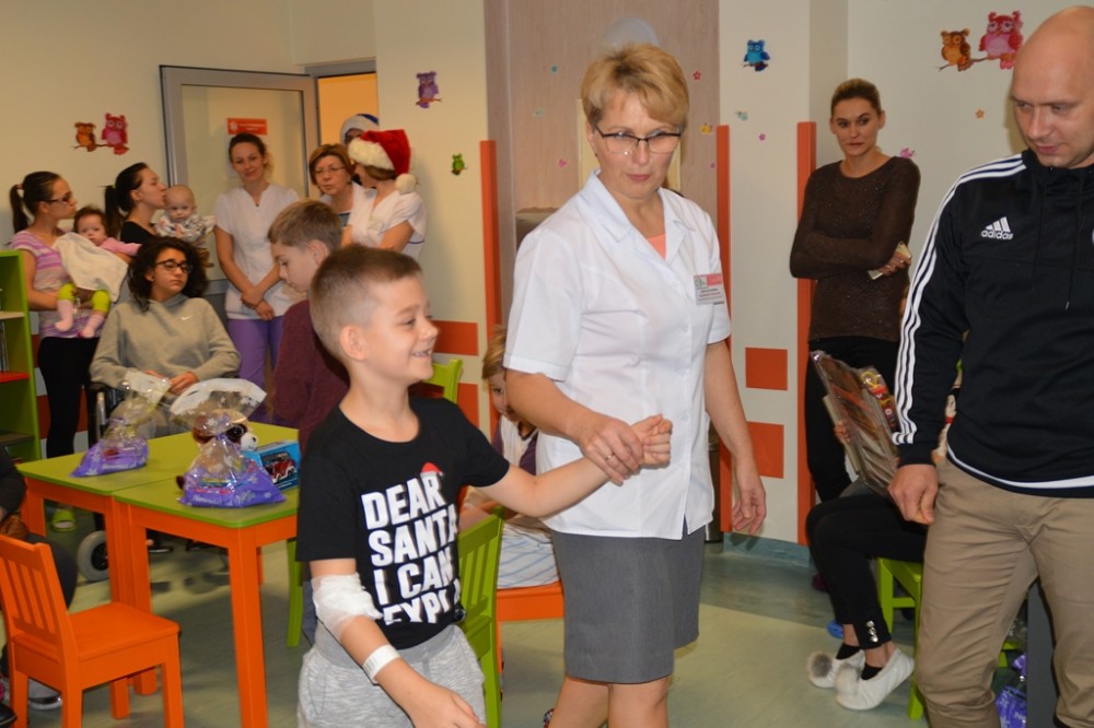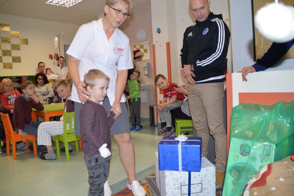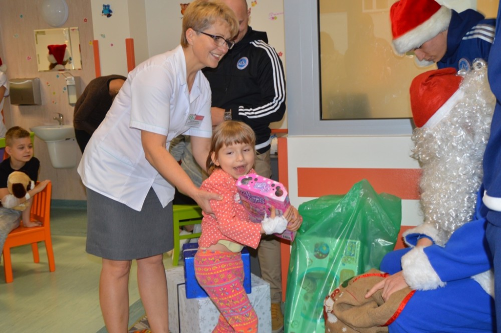 Pierwszoligowi piÅ‚karze Damian GÄ…ska i Maciej Radaszkiewicz, ich trener Artur Skowronek oraz szkoleniowiec drużyny rezerw Kamil Lauryn odwiedzili chore dzieci w towarzystwie Åšwietego MikoÅ‚aja i Wigierskiego Misia. ByÅ‚y wierszyki, piosenki, wspólne fotografie. Mali pacjenci w wieku od kilku miesiÄ™cy do 15 lat otrzymali upominki, zabawki, gry i sÅ‚odycze.