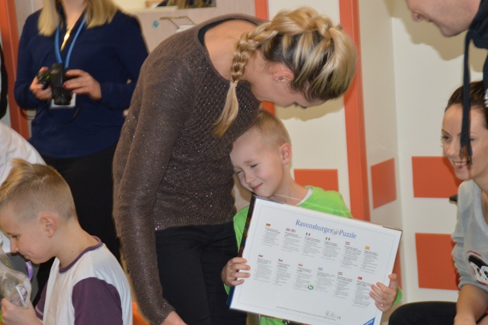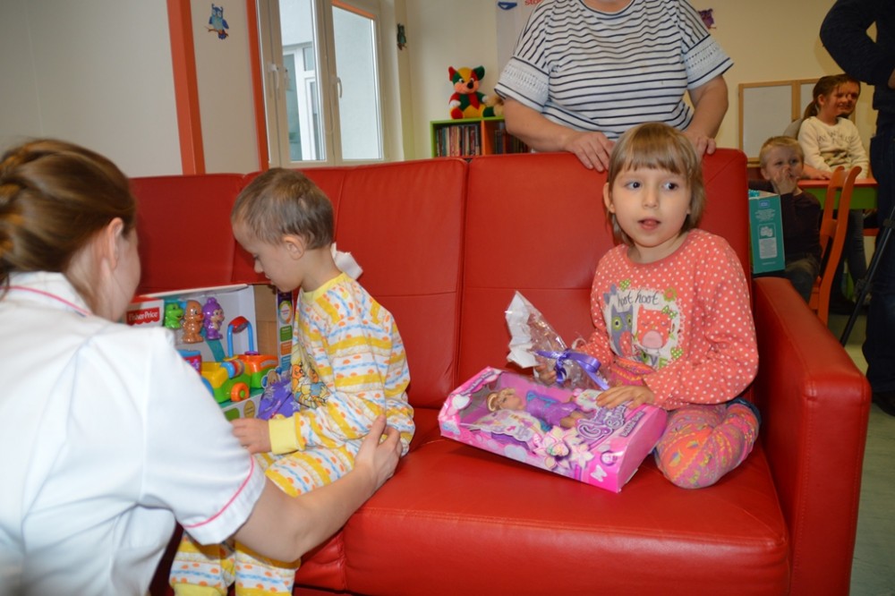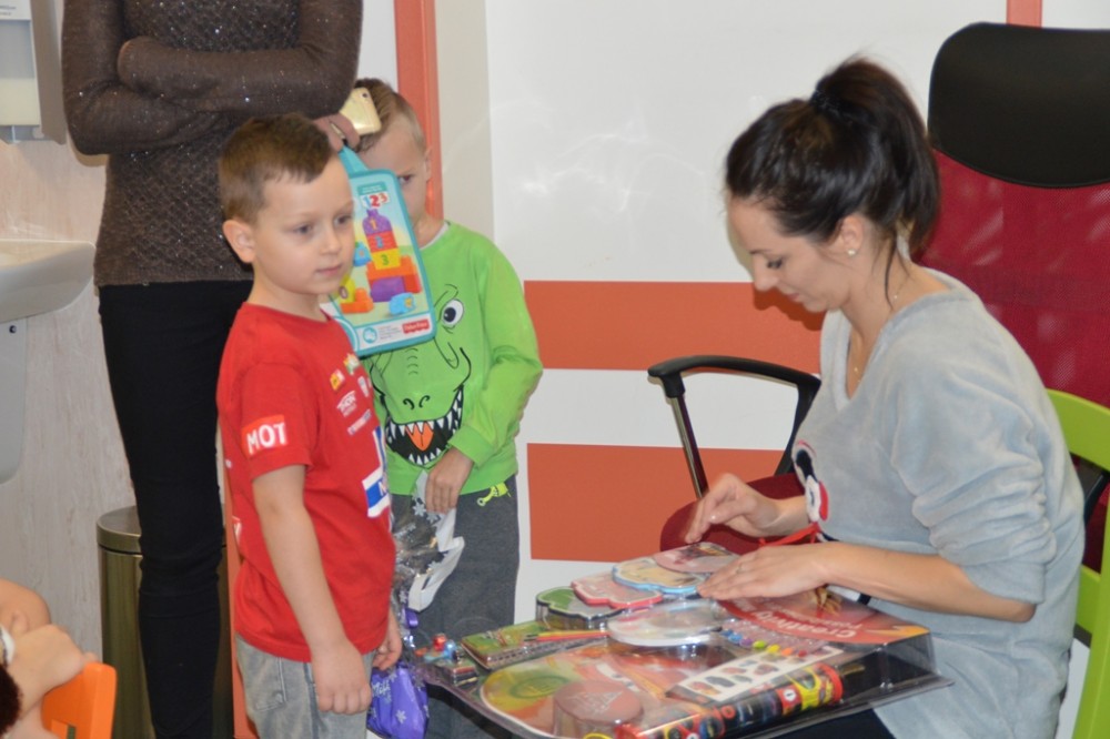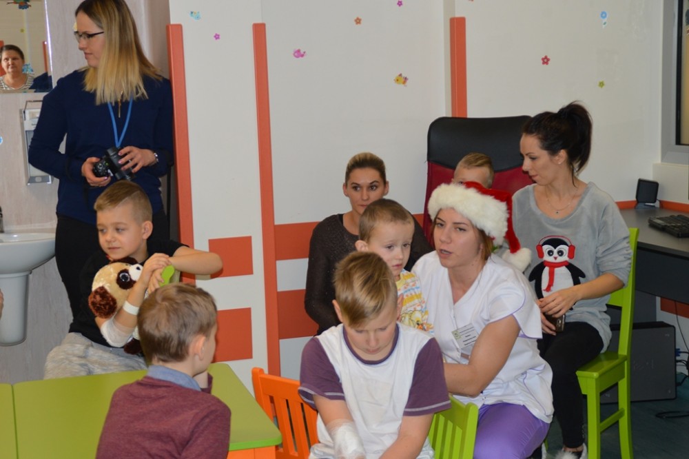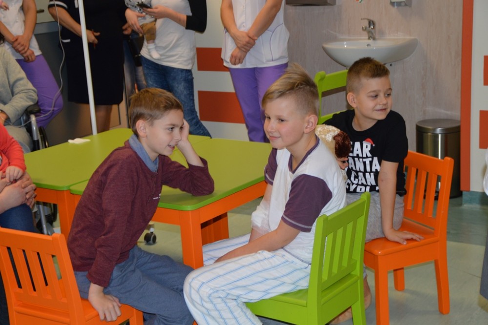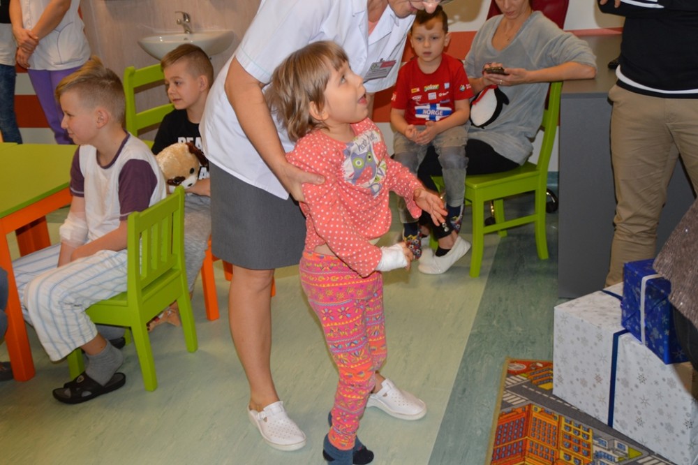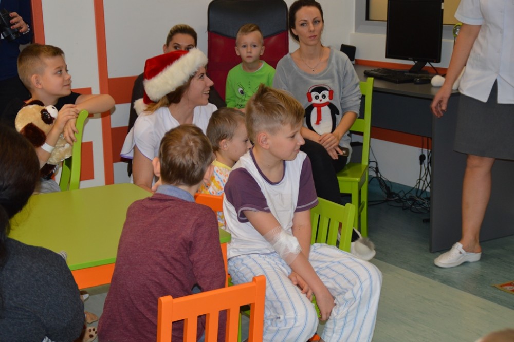 Pierwszoligowi piÅ‚karze Damian GÄ…ska i Maciej Radaszkiewicz, ich trener Artur Skowronek oraz szkoleniowiec drużyny rezerw Kamil Lauryn odwiedzili chore dzieci w towarzystwie Åšwietego MikoÅ‚aja i Wigierskiego Misia. ByÅ‚y wierszyki, piosenki, wspólne fotografie. Mali pacjenci w wieku od kilku miesiÄ™cy do 15 lat otrzymali upominki, zabawki, gry i sÅ‚odycze.