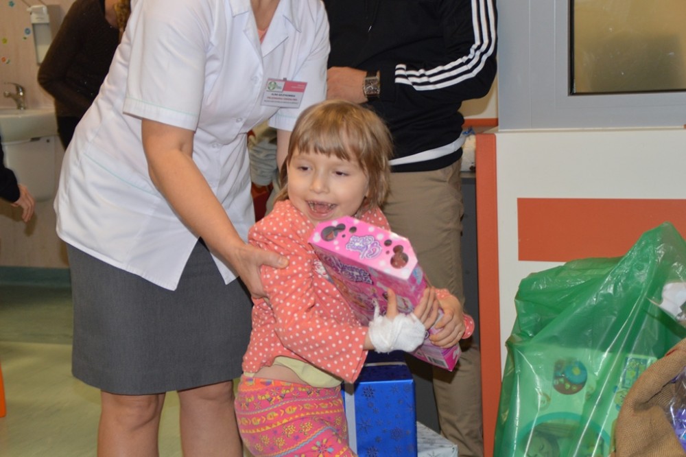 Mali pacjenci, ich rodzice, a także pracownice oddziału pediatrii szpitala Wojewódzkiego w Suwałkach przeżyli chwile radości. Prezentami i słodyczami obdarował ich Suwalski Klub Sportowy Wigry.