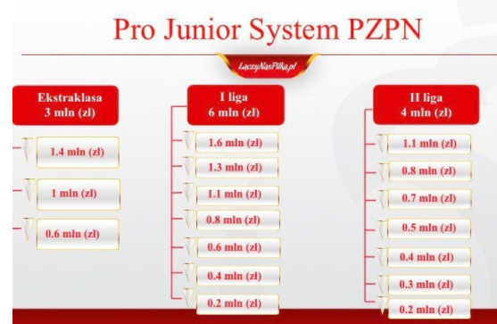 Przykra dla zainteresowanych zasada Pro Junior System mówi, że jeżeli drużyna z czołowej „7” w klasyfikacji spadnie z I ligi, to finansowa nagroda przypada następnej w kolejności. Tak się składa, że i po rundzie jesiennej, i dzisiaj czołowe pierwsze trzy miejsca w Pro Junior, a zarazem ostatnie od końca w tabeli I ligi zajmują Górnik Łęczna, Ruch Chorzów i Stomil Olsztyn (młody skład, niestety, może też być wytłumaczeniem ich kiepskiej postawy). Jeżeli te drużyny zostaną zdegradowane z ligi , a suwalska utrzyma pozycję w Pro Junior, to Wigry zajmą w tej klasyfikacji 3. miejsce i zarobią 1,1 mln zł.