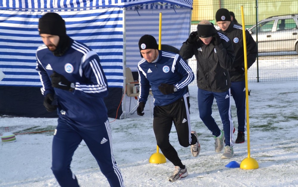 Przy 10-stopniowym mrozie podzieleni na siedmioosobowe grupy piÅ‚karze przez godzinÄ™ biegali wokóÅ‚ boiska ZespoÅ‚u SzkóÅ‚ nr 7. Podczas przerw miÄ™dzy rundami, z których każda kolejna przeprowadzana byÅ‚a w szybszym tempie pobierano im krew do badaÅ„, które okreÅ›la stopieÅ„ wytrenowania organizmu.
