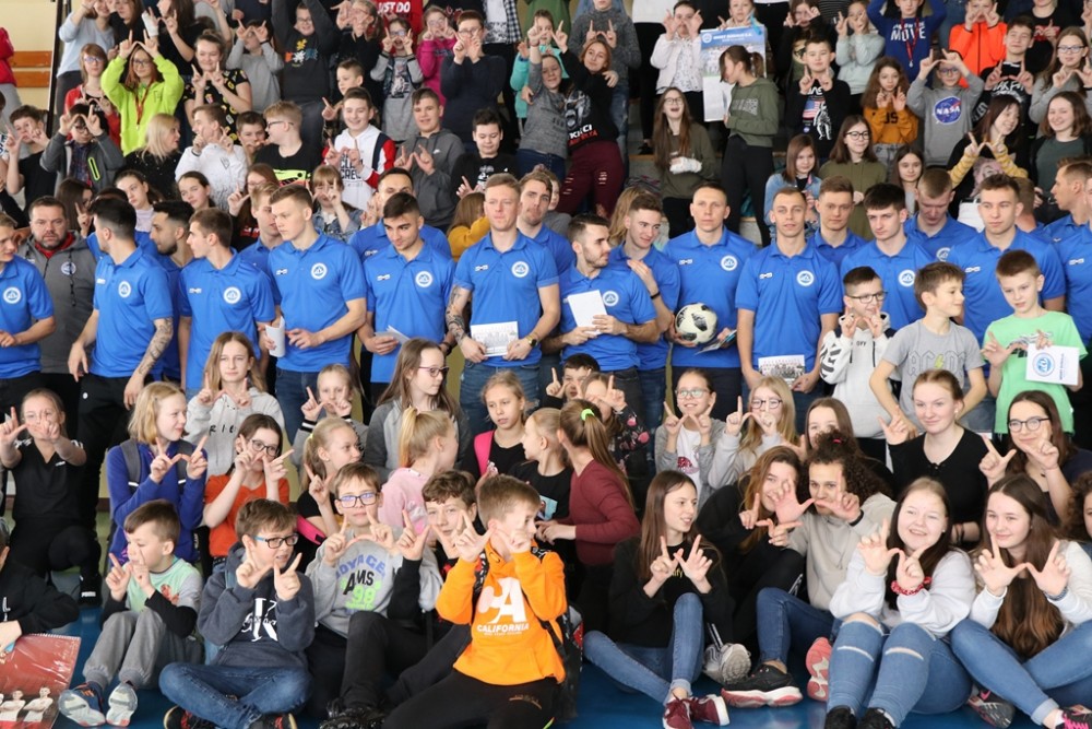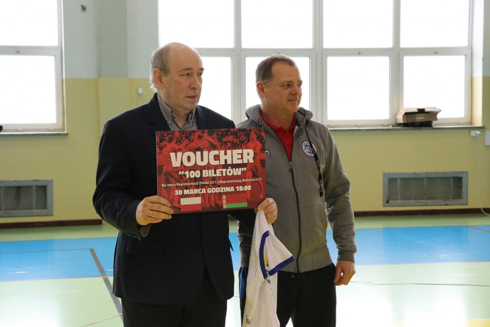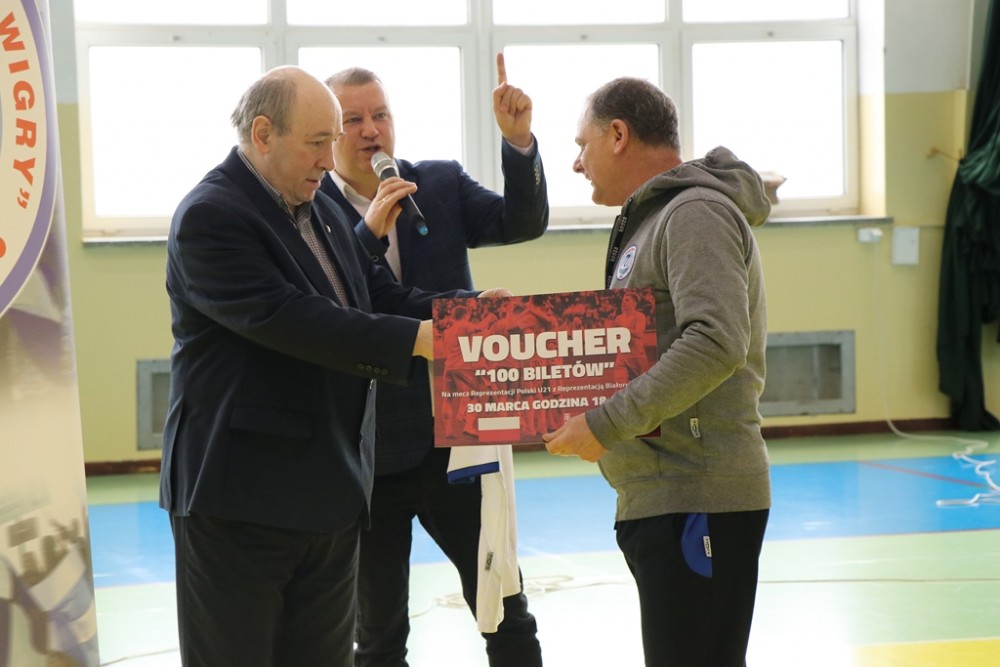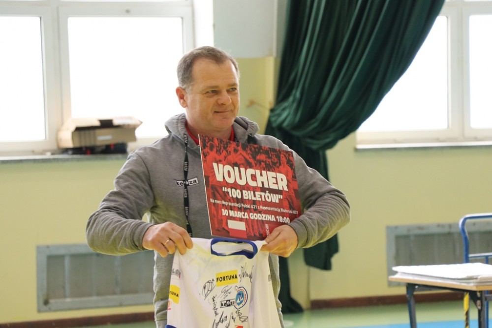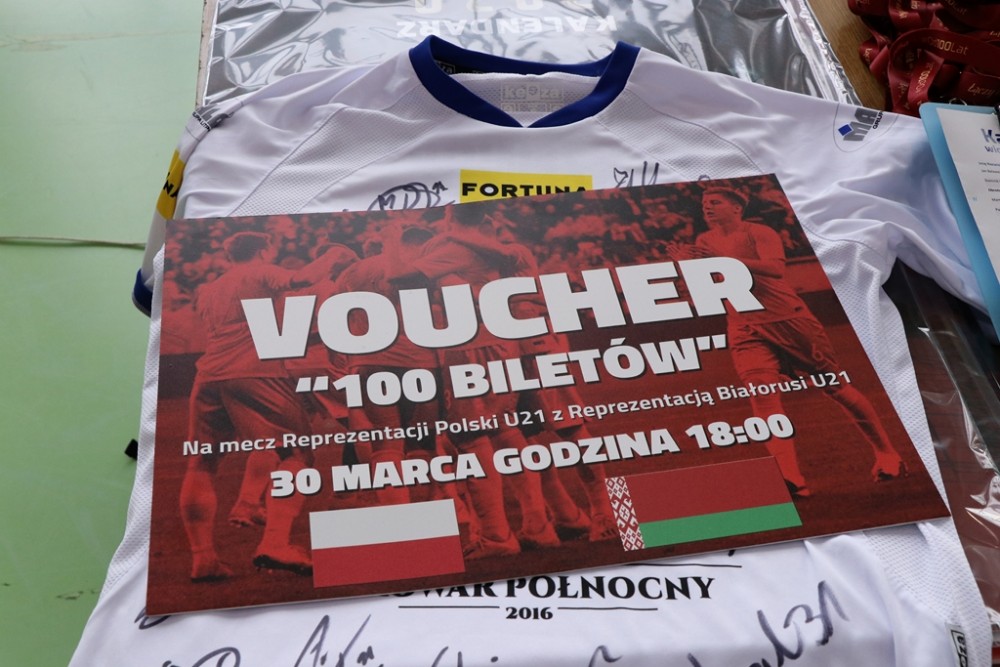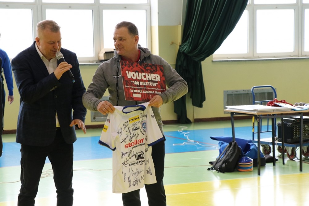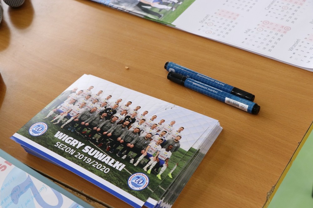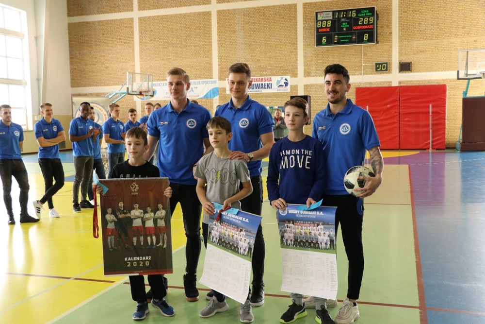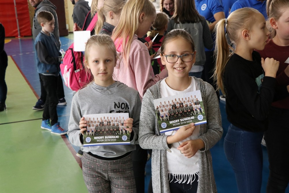 Po prezentacji zawodników byÅ‚y wspólne zdjÄ™cia, autografy i konkursy z nagrodami. W podziÄ™kowaniu za goÅ›cinÄ™ dyrektor SzkoÅ‚y Piotr ZieliÅ„ski otrzymaÅ‚ z rÄ…k Zbigniewa Kowalewskiego, kierownika drużyny, voucher – 100 biletów na miÄ™dzypaÅ„stwowy mecz Polska - BiaÅ‚oruÅ› U-21, który odbÄ™dzie siÄ™ 30 marca o godzinie 18.00 na Stadionie Miejskim w SuwaÅ‚kach oraz koszulkÄ™ Wigier z autografami.