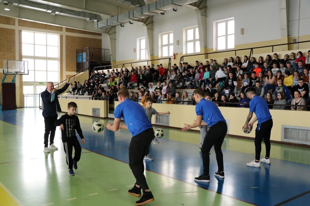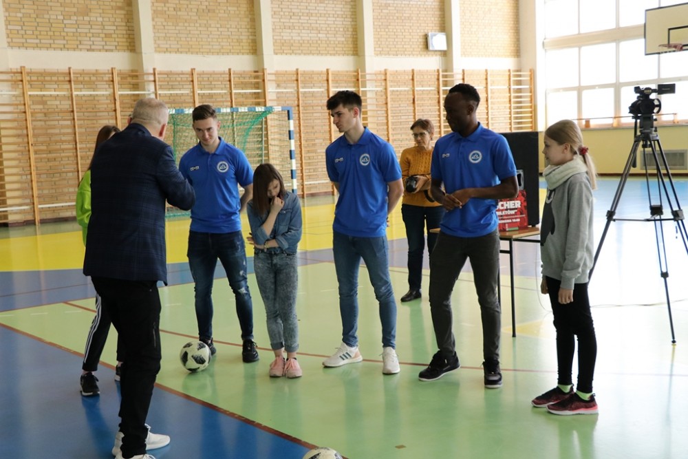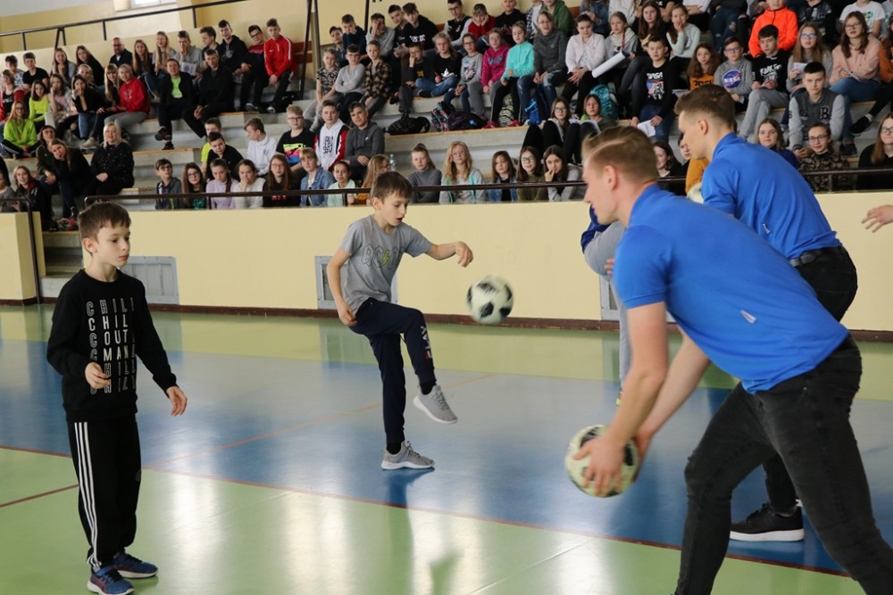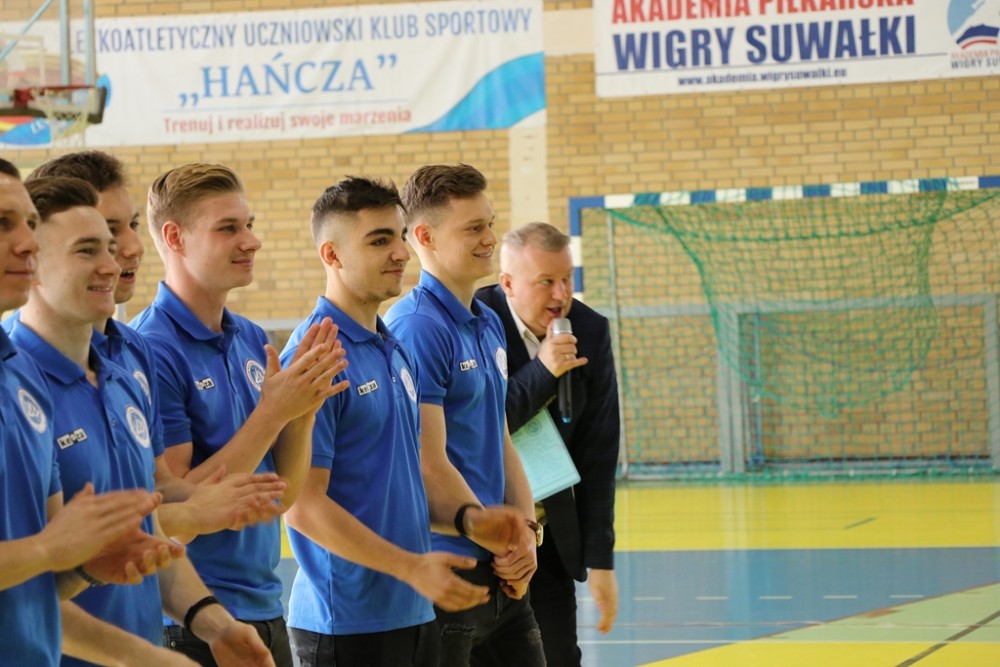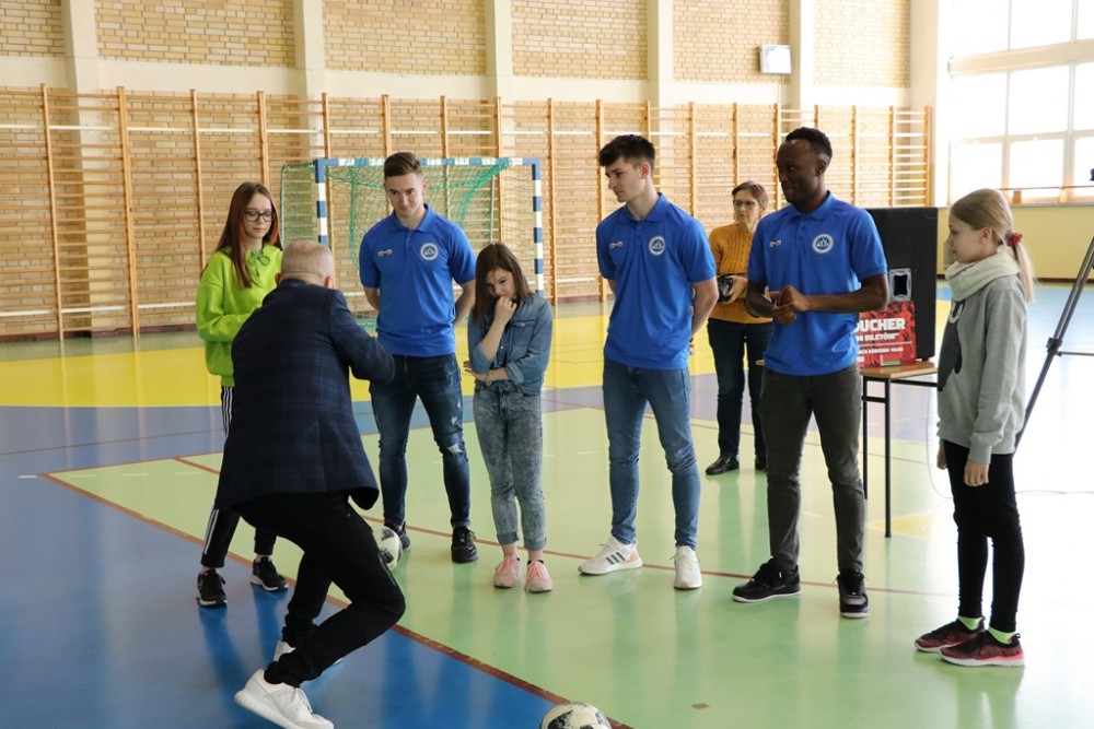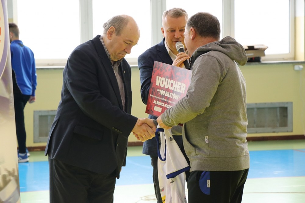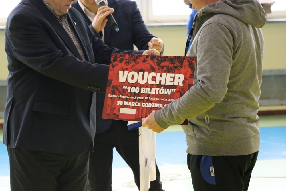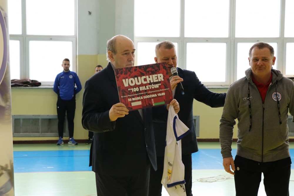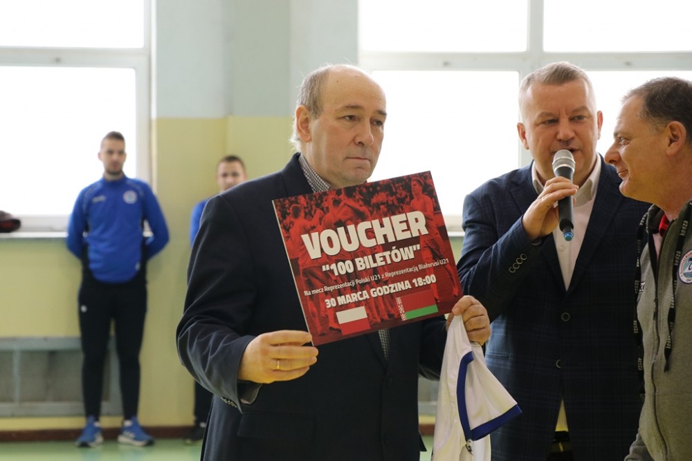 Po prezentacji zawodników byÅ‚y wspólne zdjÄ™cia, autografy i konkursy z nagrodami. W podziÄ™kowaniu za goÅ›cinÄ™ dyrektor SzkoÅ‚y Piotr ZieliÅ„ski otrzymaÅ‚ z rÄ…k Zbigniewa Kowalewskiego, kierownika drużyny, voucher – 100 biletów na miÄ™dzypaÅ„stwowy mecz Polska - BiaÅ‚oruÅ› U-21, który odbÄ™dzie siÄ™ 30 marca o godzinie 18.00 na Stadionie Miejskim w SuwaÅ‚kach oraz koszulkÄ™ Wigier z autografami.