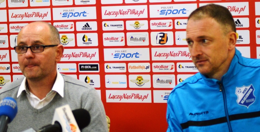 Dominik Nowak, trzeci w bieżących rozgrywkach trener biaÅ‚o-niebieskich zaczÄ…Å‚ od remisu 2:2 u siebie z prowadzonym przez Andrzeja KonwiÅ„skiego MKS Kluczbork (obaj na zdjÄ™ciu). Potem Wigry pojechaÅ‚y na Pomorze i pokonaÅ‚y 1:0 ChojniczankÄ™, która także w tym roku jeszcze nie wygraÅ‚a. To przesÄ…dziÅ‚o o zwolnieniu Mariusza Pawlaka, który pracowaÅ‚ z zespoÅ‚em z Chojnic od czerwca 2012 r., awansowaÅ‚ z nim do I ligi i zajÄ…Å‚ w niej 5. miejsce.