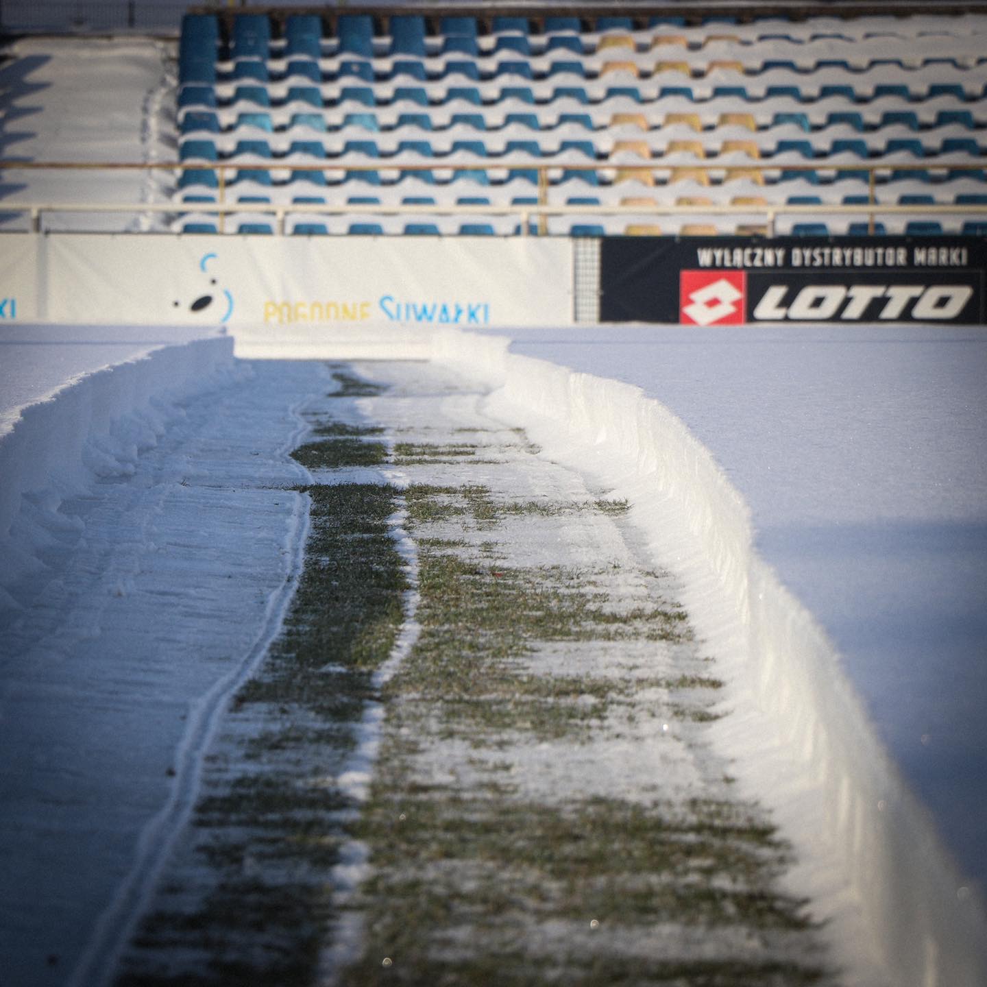 Na własnej, naturalnej murawie Biało-Niebiescy mają nadzieję zagrać 12 marca, w meczu ligowym. Pracownicy OSiR przedwczoraj rozpoczęli usuwanie 40-centymetrowej pokrywy śnieżnej. Muszą zdążyć przed odwilżą, przed rozmrożeniem nawierzchni, bo potem nie sposób będzie wjechać cięższym sprzętem na grząskie boisko. Po odśnieżeniu, będzie można włączyć system podgrzewania murawy.
