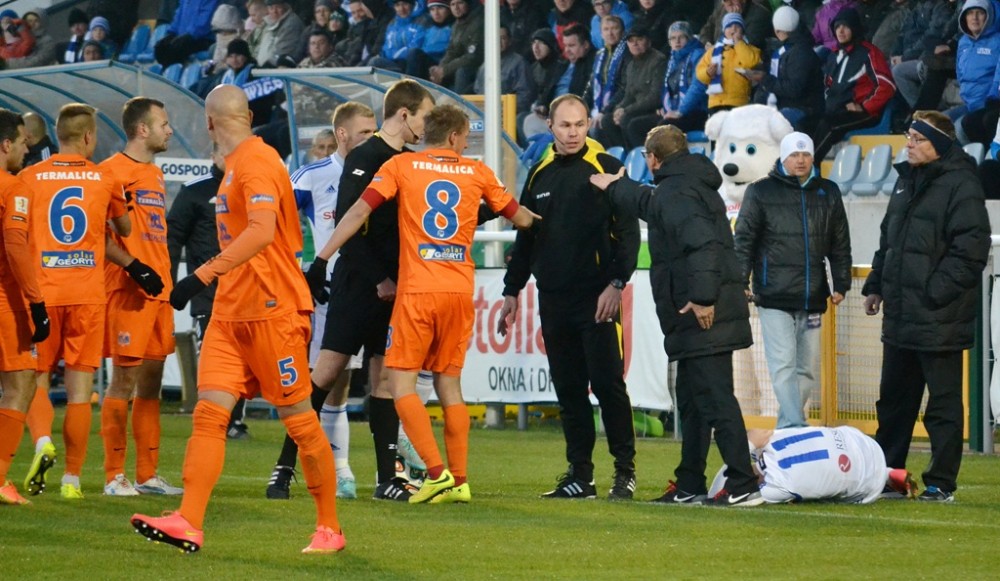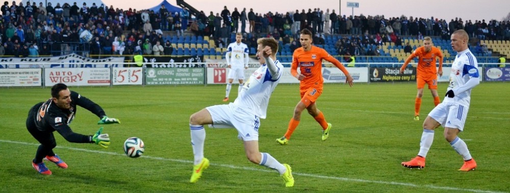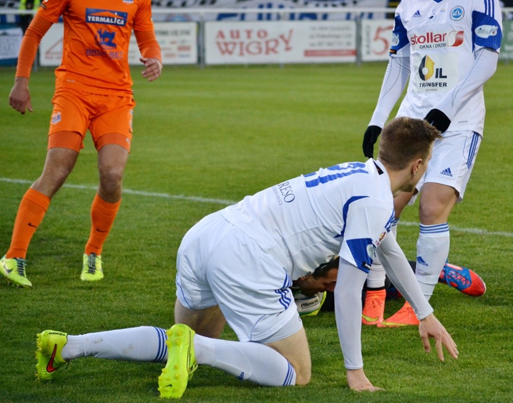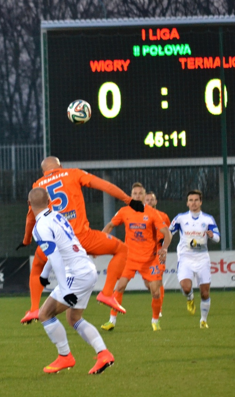 W 14. kolejce suwalskie Wigry zremisowały 1:1 z liderem Termalicą Bruk-Bet Nieciecza. Wywalczyły jeden punkt, ale straciły ukaranego czerwoną kartką Macieja Wichtowskiego i kontuzjowanego Kamila Adamka. Ten drugi ma problemy ze ścięgnem i będzie pauzował przez minimum dwa tygodnie. A kolejny mecz czeka suwalczan już w piątek w Świnoujściu z Flotą.