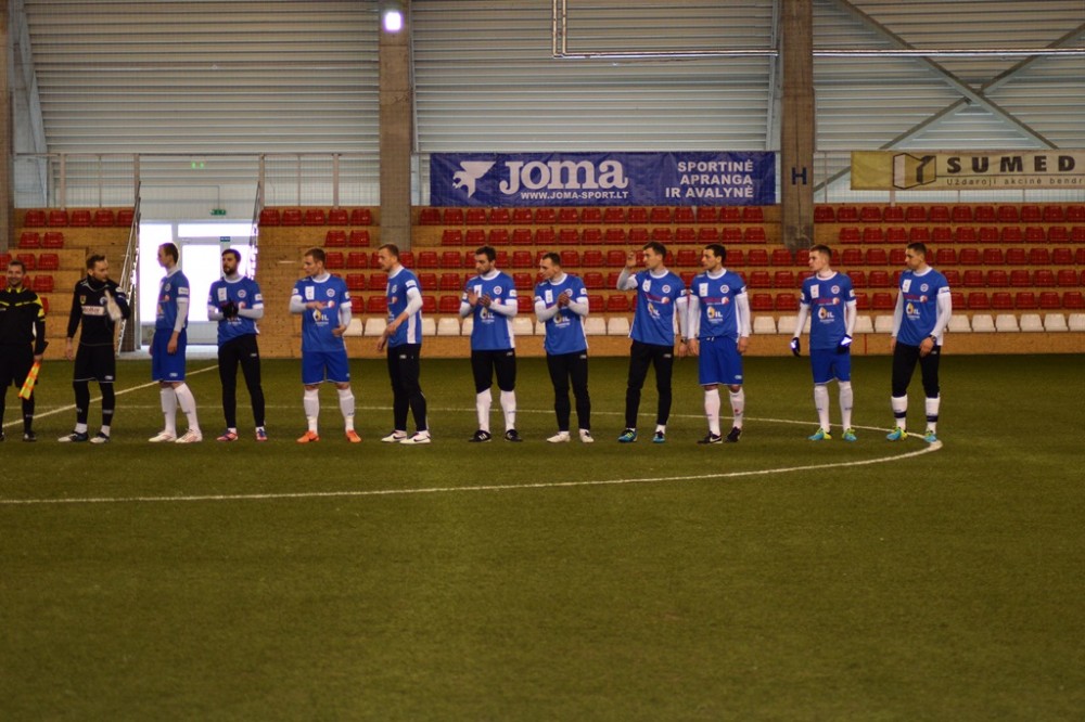 W rozegranym w hali w Mariampolu meczu z szóstym zespołem litewskiej ekstraklasy biało-niebiescy podobać się mogli tylko w pierwszej połowie. Od początku dłużej utrzymywali się przy piłce. Krążyła ona jednak głównie po obwodzie, mało było prostopadłych podań do Tomasza Tuttasa lub wysuniętego pomocnika Marcina Tarnowskiego.