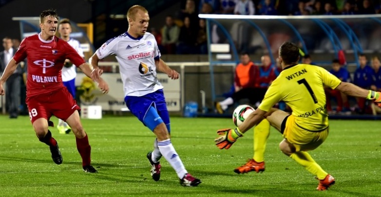 Suwalczanie znali wiekszość wyników, bo mecz w Puławach był jednym z dwóch zamykających 21. kolejkę spotkań. Wiedzieli, że wygrana z beniaminkiem znacznie umocni ich pozycję. Po zwycięstwie 2:0 nad Podbeskidziem, znowu zagrali na "zero z tyłu". Byli przekonani, że prędzej czy później "cos strzelą" i tak się stało.