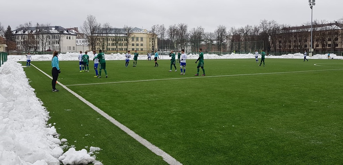 Dotychczasowe trzy sparingi z FK Poniewież i SuduvÄ… Mariampol (po 0:0) oraz Vytisem Wilno (6:1) BiaÅ‚o-Niebiescy rozegrali w piÅ‚karskiej hali w Mariampolu. Na Å›wieżym powietrzu w Kownie nie grali żle, ale nie ustrzegli siÄ™ błędów w obronie, a sami nie byli skuteczni. Na przerwÄ™ schodzili przegrywajÄ…c dwiema bramkami.