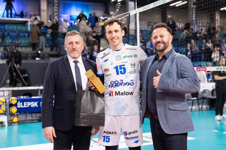 W trzecim secie gospodarze nie utrzymali koncentracji i GKS, w którym coraz skuteczniejszy byÅ‚ Bartosz GomuÅ‚ka, prowadziÅ‚ caÅ‚y czas, nawet 21:17. Za sprawÄ… ataków z drugiej linii Henrique Honorato i PawÅ‚a Halaby, który zostaÅ‚ wybrany MVP spotkania, Åšelpsk Malow wyrównaÅ‚ na 23:23. Po asie serwisowym Honorato, siatkarze suwalskiej drużyny wyszli na prowadzenie 27:26 i mieli w górze piÅ‚kÄ™ meczowÄ…, ale kontry nie wykorzystaÅ‚ Bartosz Filipiak. Na szczęście, zaraz sprytna kiwkÄ… popisaÅ‚ siÄ™ PaweÅ‚ Halaba, a Aymen Bouguerra zaatkowal w siatkÄ™ i Åš;epsk malow wygral 14. mecz w sezonie.