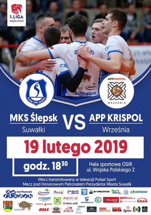 We wtorek, w meczu kończącym 25 kolejkę Ślepsk Suwałki podejmie Krispol Września, a spotkanie transmitować będzie Telewizja Polsat. Jesienią w Wrześni podopieczni Mateusza Mielnika pokonali rywali 3:0 ( 25:22, 26:24, 25:21). Wygrana za trzy punkty w hali OSiR to cel jaki przed tym meczem stawia sobie suwalski zespół.