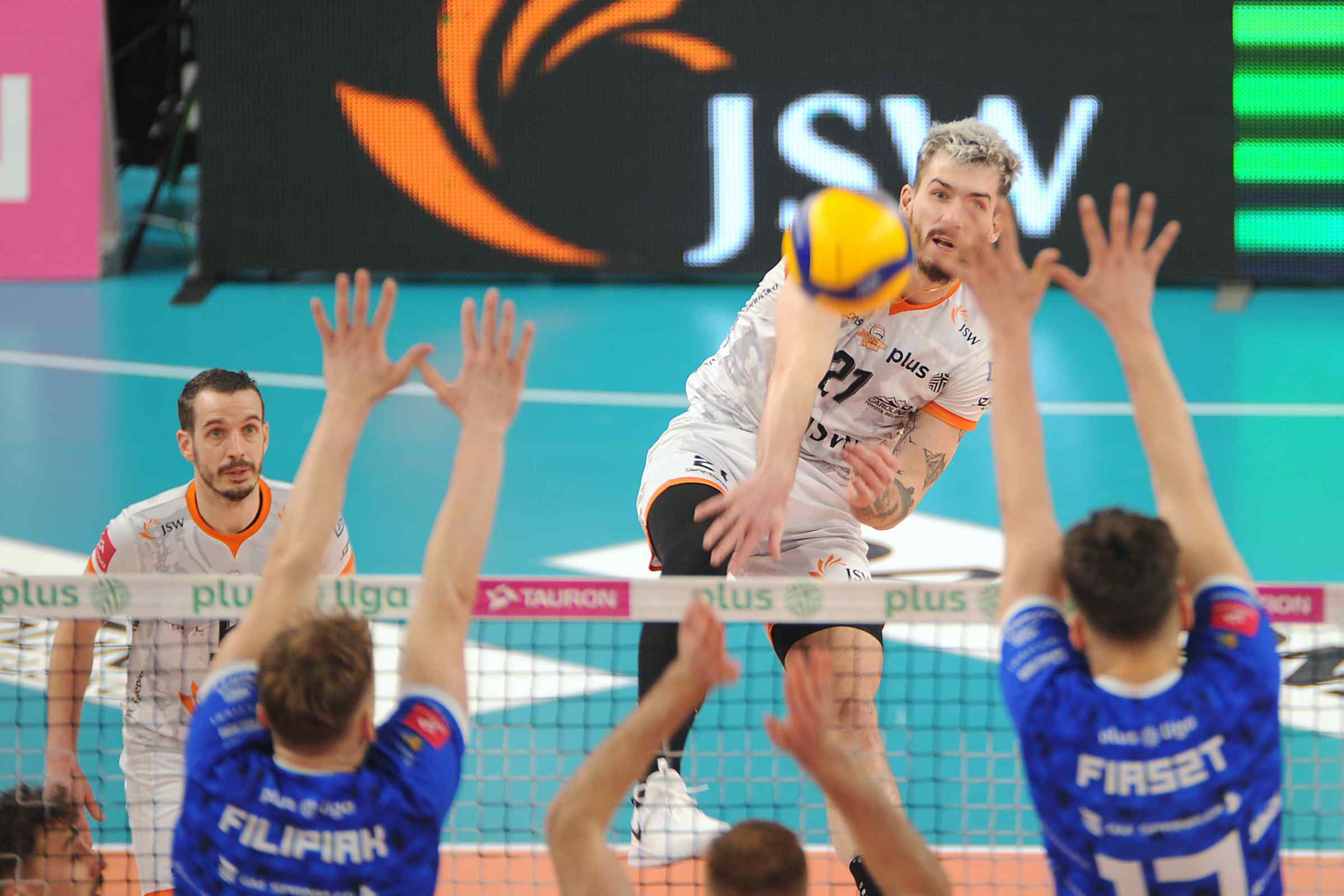 Jastrzębski Wegiel: Benjamin Toniutti 2, Jean Patry 9, Jurij Gladyr 11, Tomasz Fornal 13, Rafał Szymura (4), Norbert Huber 8, Jakub Popiwczak (libero) oraz Skruuders, Marko Sedlacek 5, Ryan Sclater 3