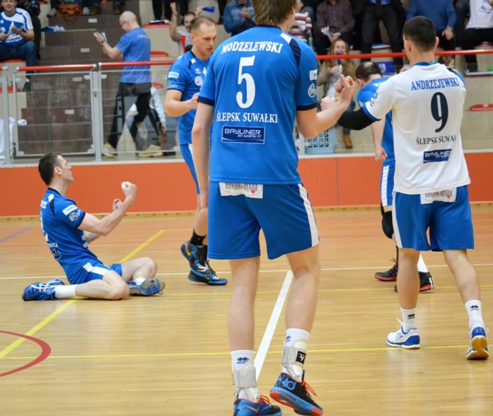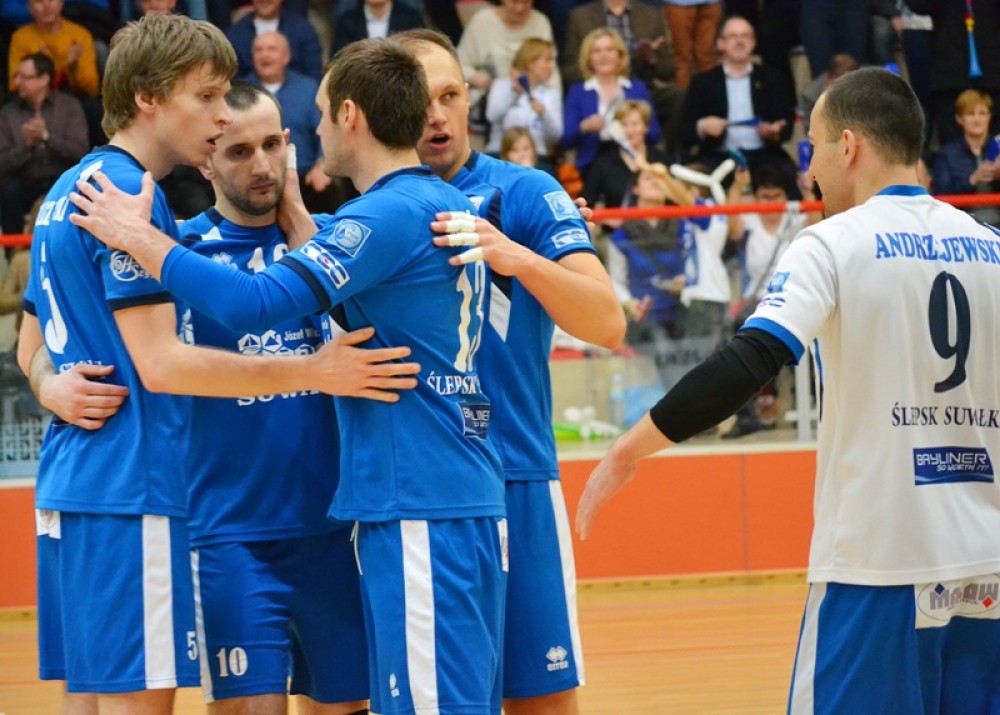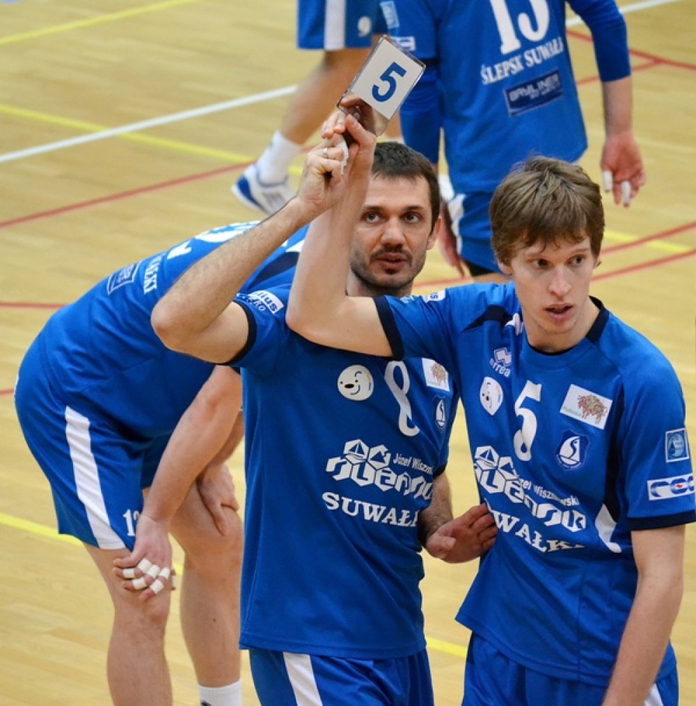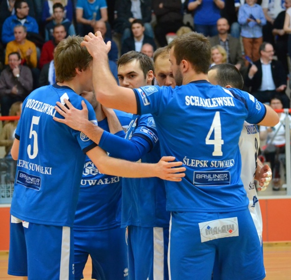 Ślepsk: Makowski, Kałasz, Skorij, Schamlewski, Skrzypkowski, Winnik, Andrzejewski (libero) oraz Modzelewski, Bell, Rudzewicz, Pachliński.