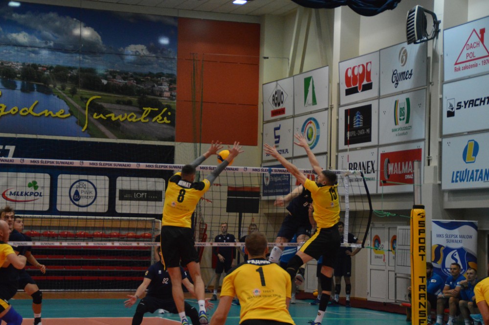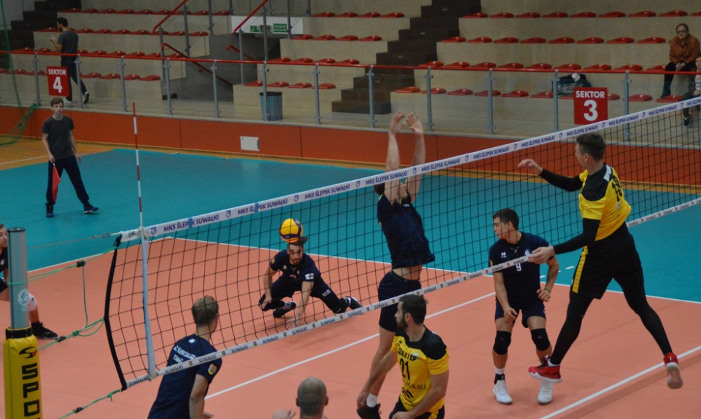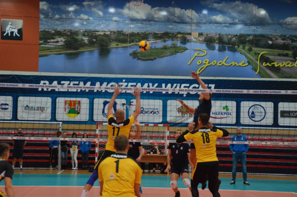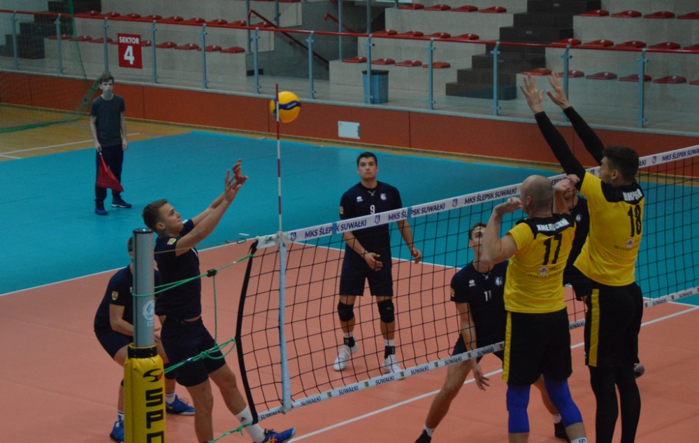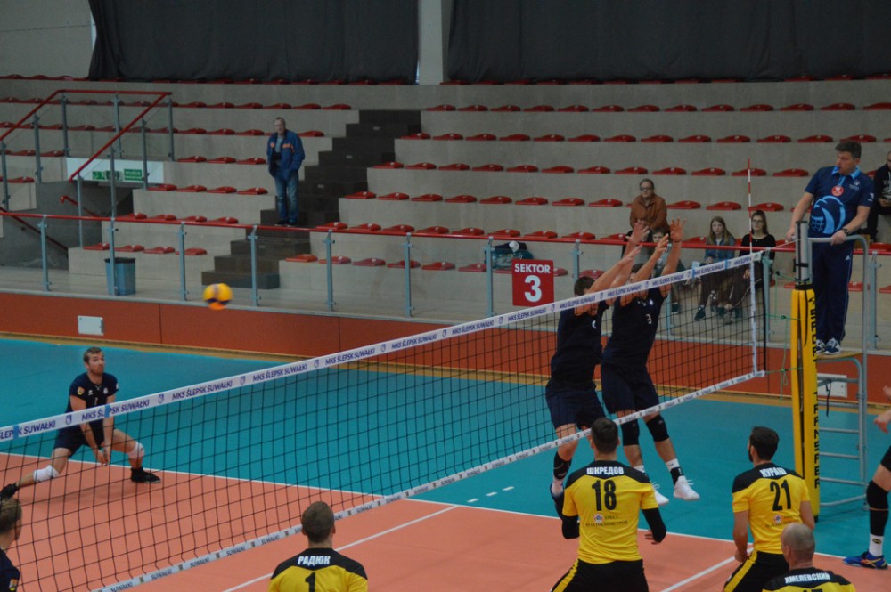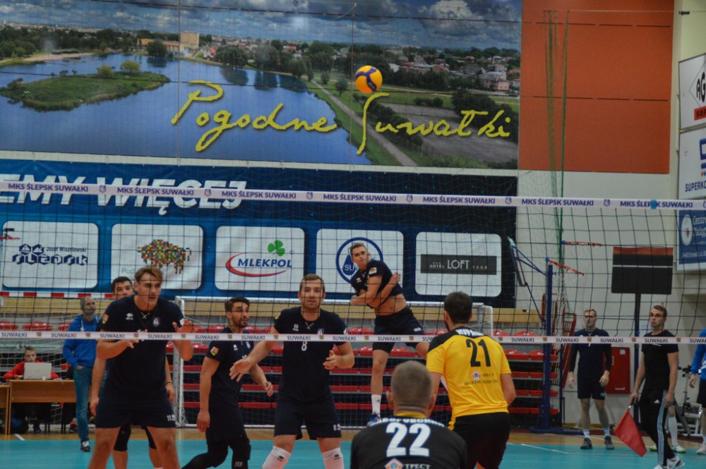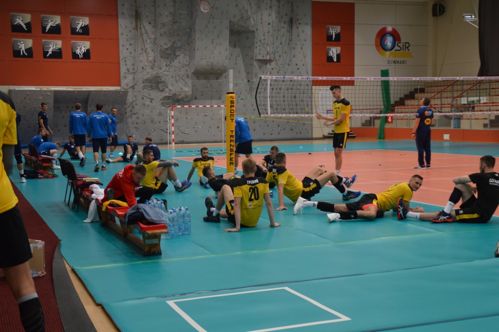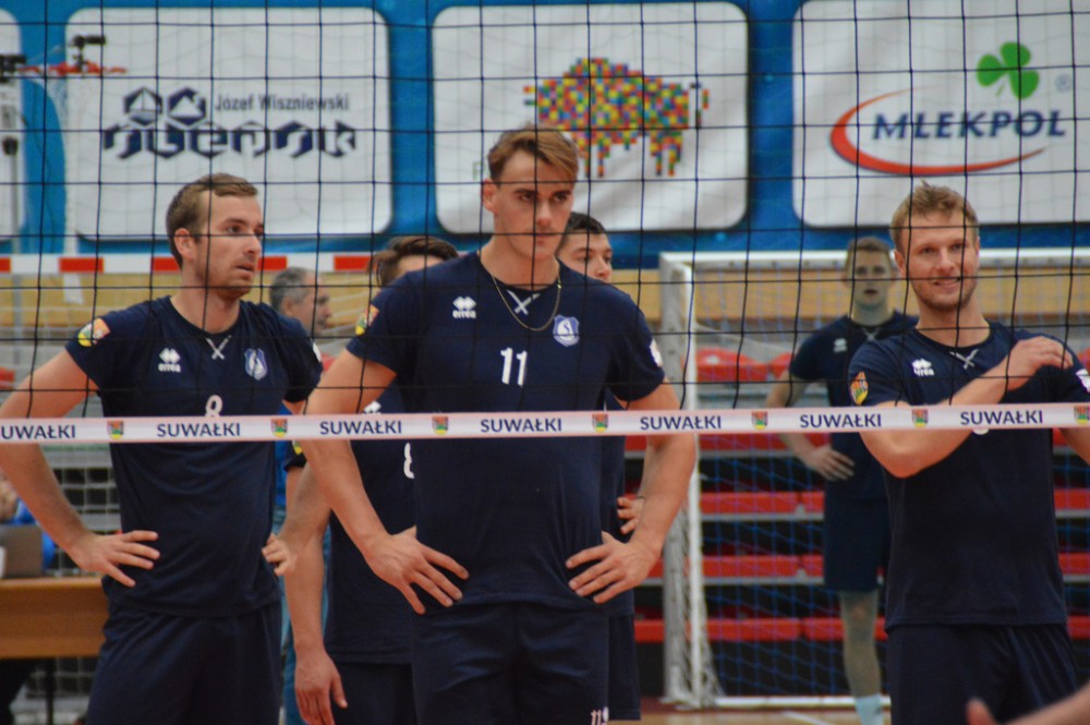 Szachtior Soligorsk, który w tym roku siegnął po trzecie z rzędu mistrzostwo Białorusi, występuje także w rosyjskiej Superlidze. Zespół, w którym swego czasu grał były reprezentant Polski Łukasz Kadziewicz, znacznie lepiej od gospodarzy rozpoczął spotkanie w suwalskiej hali. Kacper Gonciarz, Kevin Klinkenberg, Nicolas Szerszeń, Bartłomiej Bołądź, Andreas Takvam, Wojciech Siek oraz obaj libero Adrian Stańczak i Paweł Filipowicz początkowo nie mogli sobie poradzić w obronie, nadziewali się tez na blok przyjezdnych.