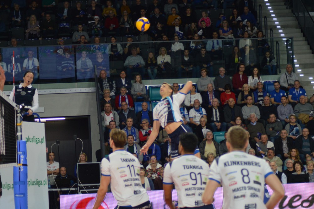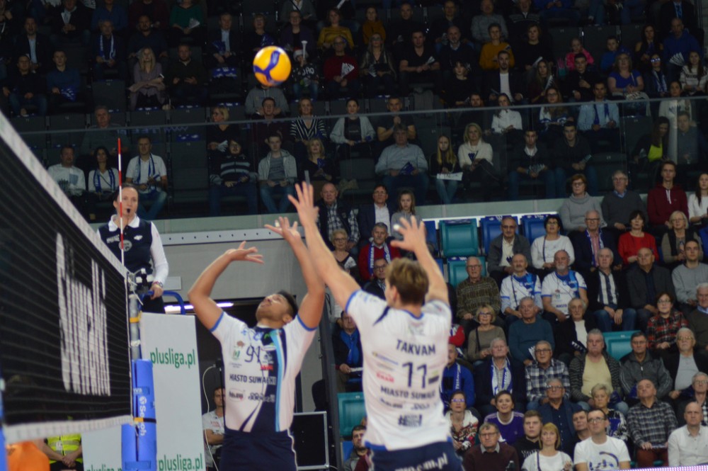 Suwałki Arena po raz drugi w swojej historii zapełniła się kibicami, ale tym razem nie po brzegi. Powodów było kilka. Tydzień wcześniej sporej grupie sympatykow Ślepska Malowu nie udało sie kupić biletów na miejscu, w kasie, ponieważ liczba wejściówek była ograniczona. W minioną sobotę biletów przeznaczonych na tę formę sprzedaży było około 400, ale fani nie pojawili się na Zarzeczu, gdyż obawiali się, że znowu odejdą z z kwitkiem. Drugim powodem były andrzejkowe imprezy, a kolejnym niskie miejsce Cuprum w tabeli. Ekipa z Lubina pokazała jednak, że i ona ma klasowych siatkarzy, którzy, niestety, okazali się lepsi od naszych. Trzeba mieć nadzieję, że najsłabszy w sezonie występ Biało-Niebieskich był to wypadkiem przy pracy.