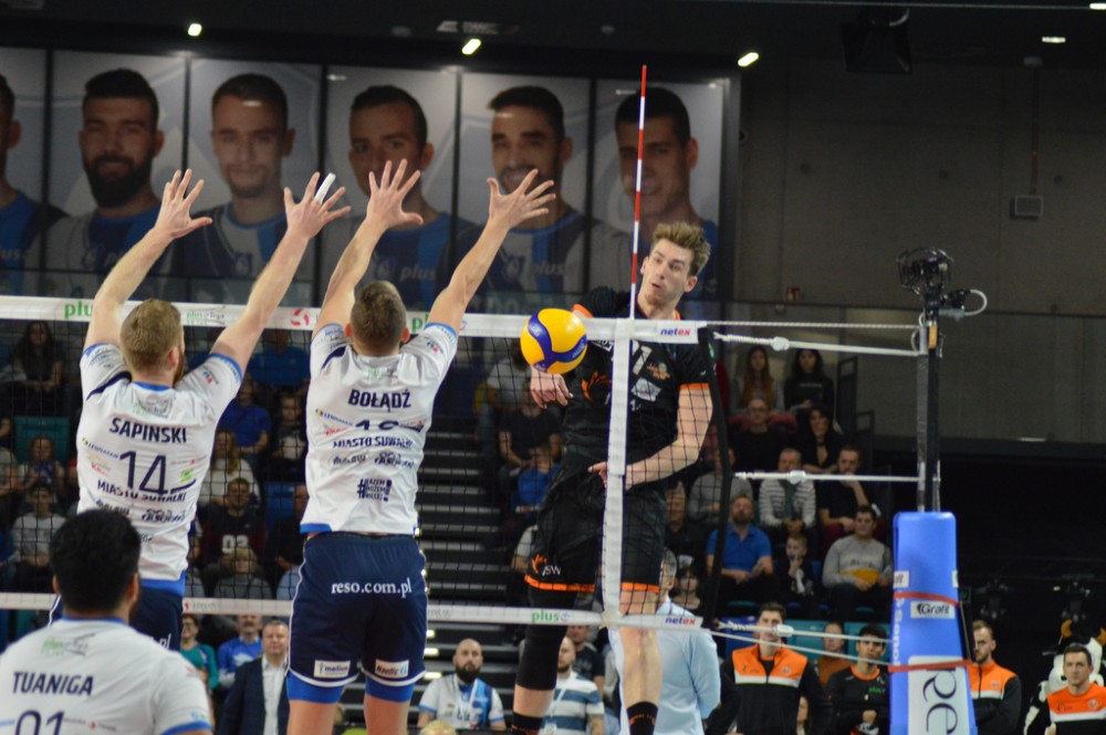 Gdyby suwalski beniaminek grał z utytułowanym rywalem tak jak w drugim secie i na początku czwartego, zdobyłby przynajmniej jeden punkt. Niestety, w przegranych partiach ustępował gościom wyraźnie.
