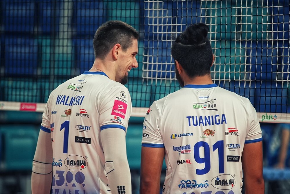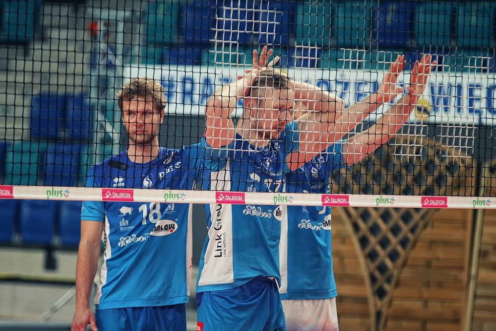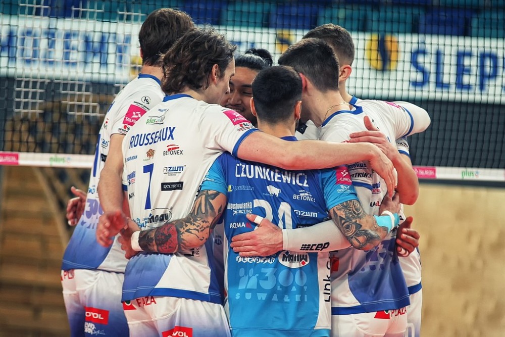 Niebiescy: Waliński (18), Kaczorowski (8), Rousseaux (17), Takvam (9), Sapiński (7), Tuaniga (2), Filipowicz (libero)