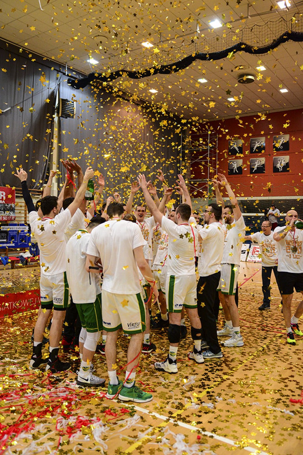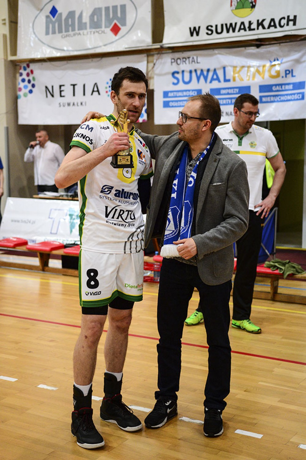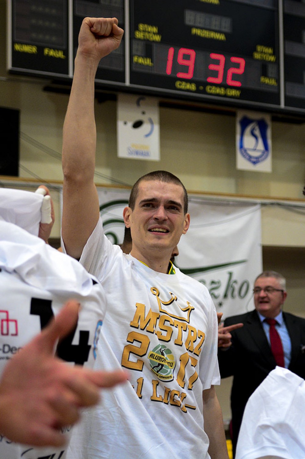 - Złoto smakuje wyśmienicie, nie spodziewałem się takiej dramaturgii z happy endem. Dziękuję chłopakom, że żaden nie spuścił głowy chociaż pierwszy set na początku nam uciekł. Szybko wyciągnęliśmy wnioski, doszliśmy rywali, ale przegraliśmy końcówkę. Potrafiliśmy jednak wejść w swoją grę, wierzyliśmy że jak to zaskoczy wygramy ten mecz. Wiara do końca pozwoliła nam osiągnąć taki wynik. Dla mnie jest to drugi złoty medal za mistrzostwo pierwszej ligi. Ten ma jednak dodatkowy smaczek bowiem zdobyłem go pokonując drużynę w której grałem i to na jej parkiecie. Wspominałem a teraz tym bardziej serdecznie będę wspominał Suwałki. Pozdrawiam kibiców, a wszystkim fanom Ślepska życzę Wesołych Świąt.