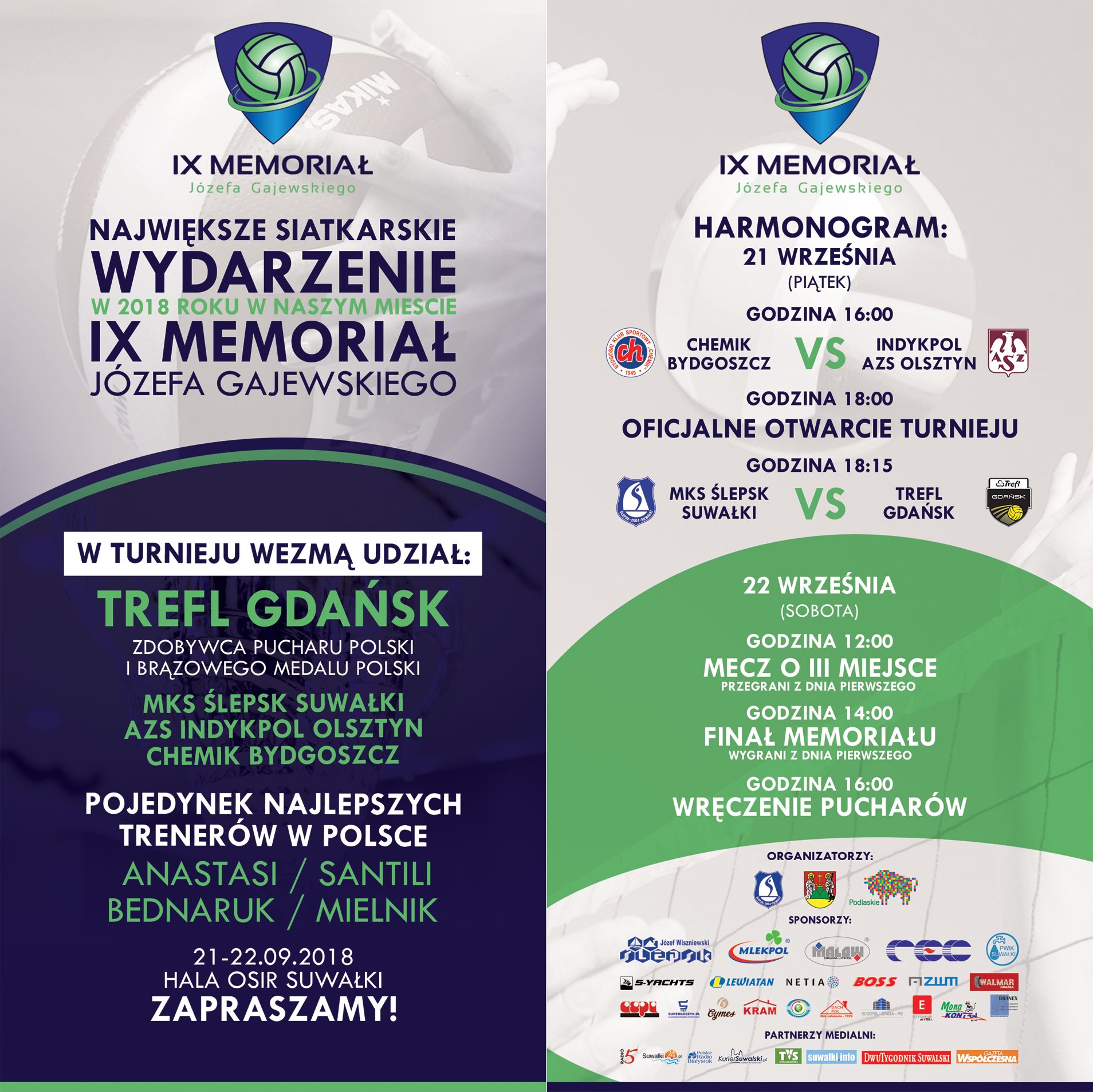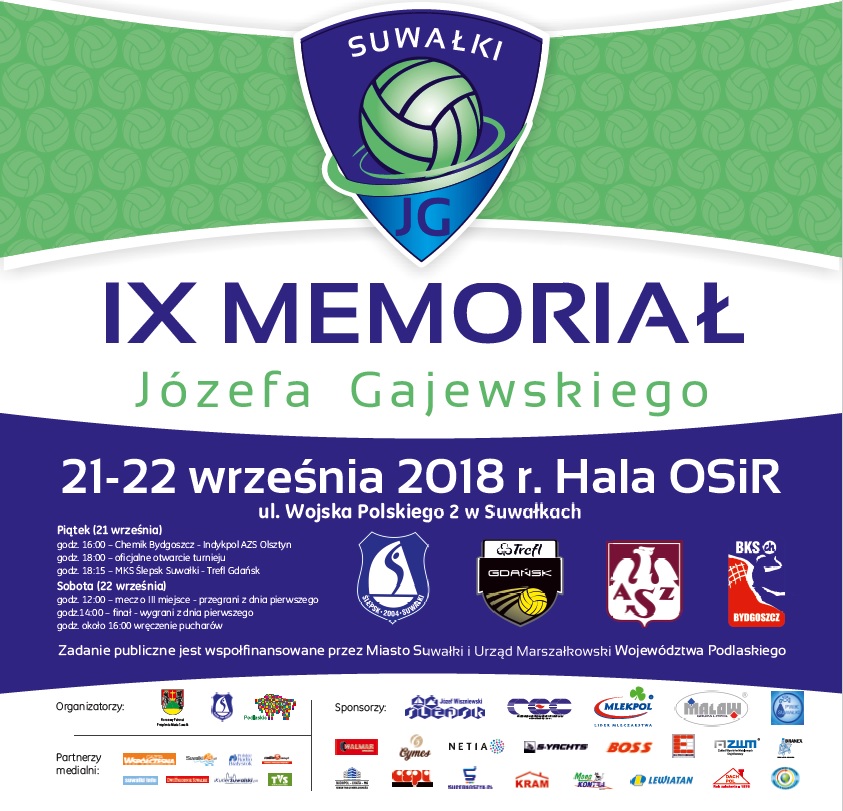 Tak mocnej obsady rozpoczynający się w piątek dwudniowy Memoriał Józefa Gajewskiego w swojej historii jeszcze nie miał. Wszak obok gospodarzy, siatkarzy Ślepska Suwałki, wystąpią Trefl Gdańsk - brązowy medalista, AZS Olsztyn – czwarty i Chemik(Łuczniczka) Bydgoszcz - 13. zespół Plus Ligi sezonu 2017/18. To będzie sportowa uczta dla miłośników piłki siatkowej nie tylko z Suwałk, ale z całego regionu.