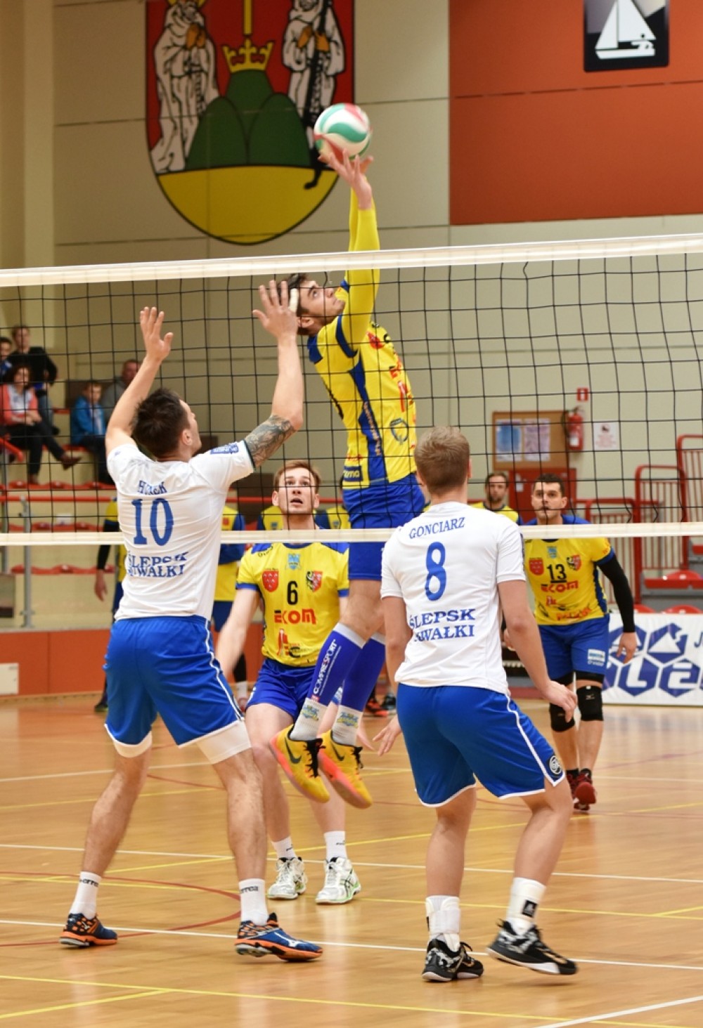 Siatkarze Ślepska Suwałki pokonali Stal AZS Nysa 3:1, a w drugim secie wręcz rozhartowali Stal wygrywając go 25:10. Dzięki tej wygranej suwalczanie z 38 pkt. awansowali na pozycję wicelidera, ale mają tyle samo punktów co prowadzący GKS Katowice i trzeci w tabeli Espadon. W 18. kolejce suwalczan czeka wyprawa do Spały, która przegrała dziś 2:3 w Zawierciu.
