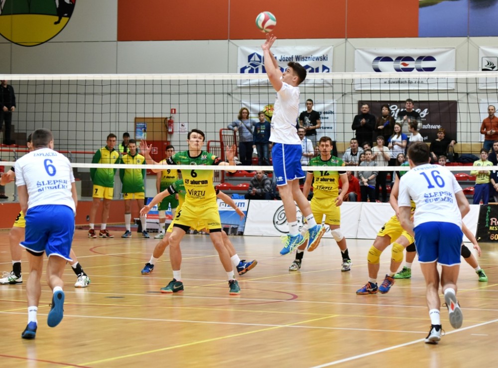Siatkarzom Ślepska Suwałki nie udało się „przepłynąć” Warty Zawiercie i po sobotniej przegranej 2:3 oddali fotel lidera GKS-owi Katowice. To była trzecia ( i to z rzędu, a druga u siebie) porażka Ślepska w czwartym meczu z ekipą z Zawiercia . Warto zwrócić uwagę, że w tym meczu w zespole gospodarzy nie zagrali chorzy Wojciech Winnik i Kamil Skrzypkowski, co ograniczyło trenerowi możliwość manewrowania składem i ustawieniem.