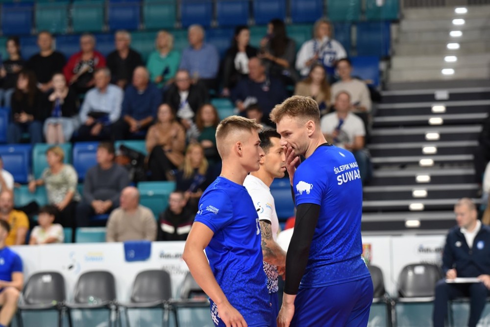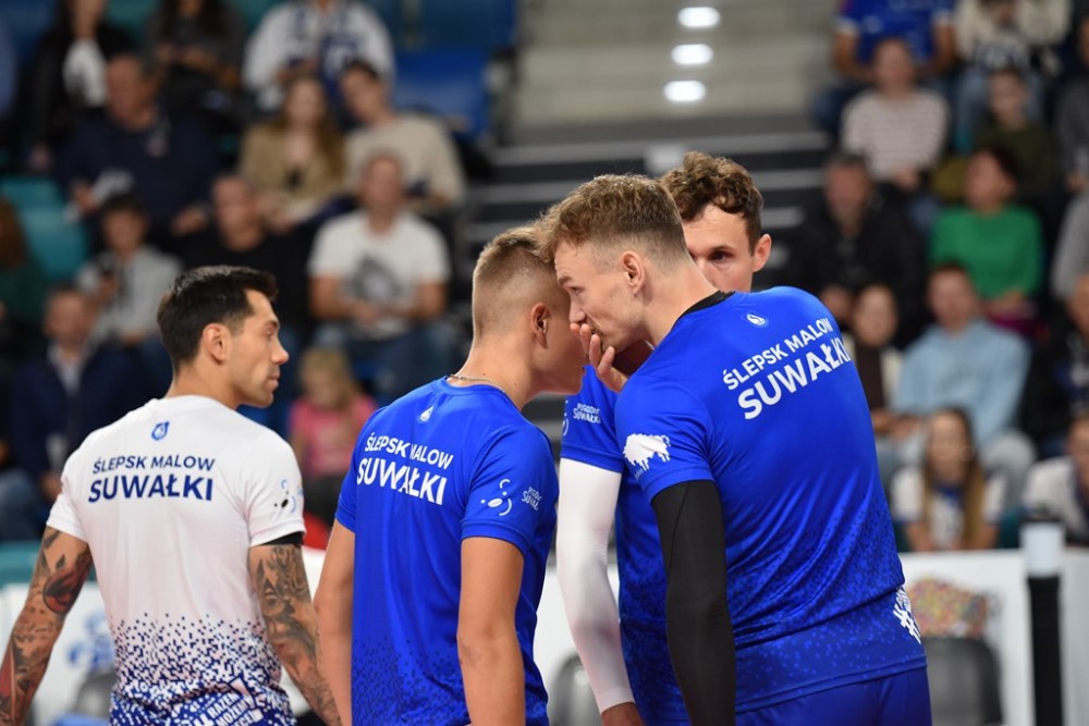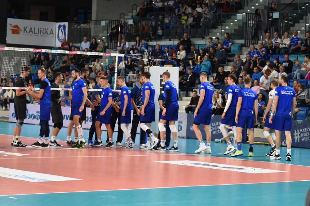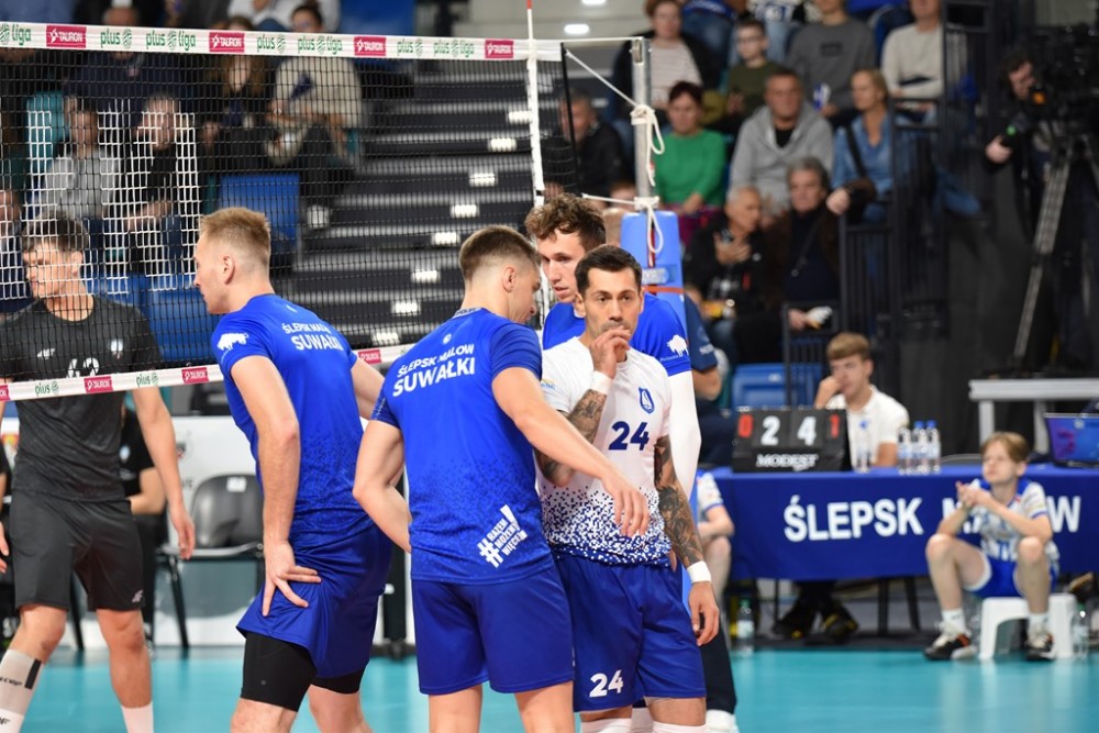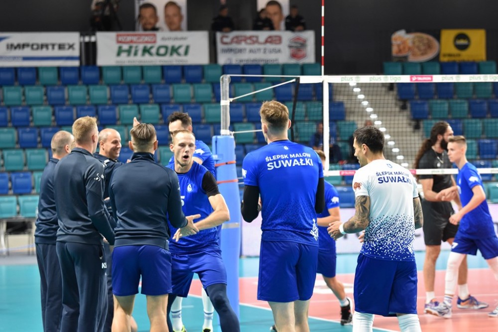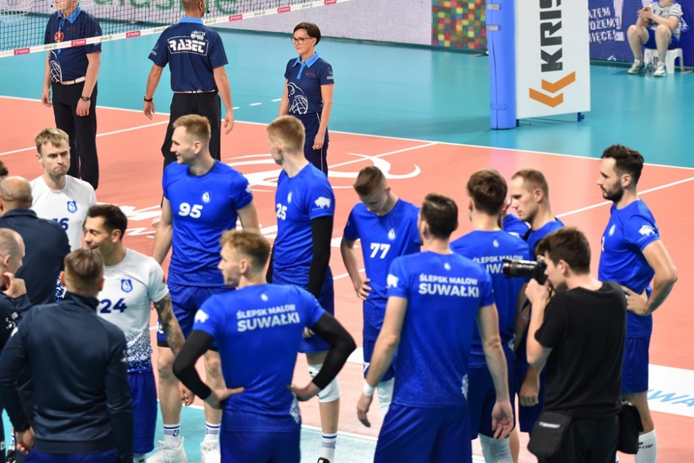 W suwalskim zespole zabrakÅ‚o wystÄ™pujÄ…cych w turniejach kwalifikacji olimpijskich (Polska dzisiaj wygraÅ‚a z HolandiÄ… 3:1 i awansowaÅ‚a na przyszÅ‚oroczne igrzyska w Paryżu!) ArgentyÅ„czyków Matiasa Sancheza i Joaquina Gallego oraz SÅ‚oweÅ„ca Zigi Sterna. WystÄ…piÅ‚ za to pozyskany tego lata serbski rozgrywajÄ…cy Maksim Buculjević, którego w koÅ„cówkach setów zmieniaÅ‚ junior SUKSS-u SuwaÅ‚ki Kacper Gibas. Przed suwalskÄ… publicznoÅ›ciÄ… udanie w biaÅ‚o-niebieskich barwach zadebiutowali też Å›rodkowi Konrad Stajer (przyszedÅ‚ z LUK Lublin) i notujÄ…cy powtórny debiut, bo w Åšlepsku graÅ‚ już w sezonie 2018/2019) Jakub Macyra (JastrzÄ™bski WÄ™giel) oraz przyjmujÄ…cy Bartosz Firszt (Enea Czarni Radom). ZagraÅ‚ też kolejny junior SUKSS, przyjmujÄ…cy Kaper Zackiewicz.