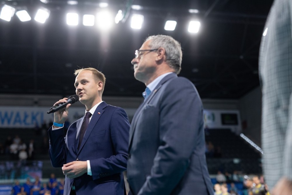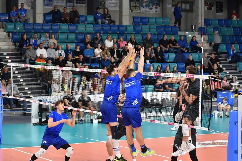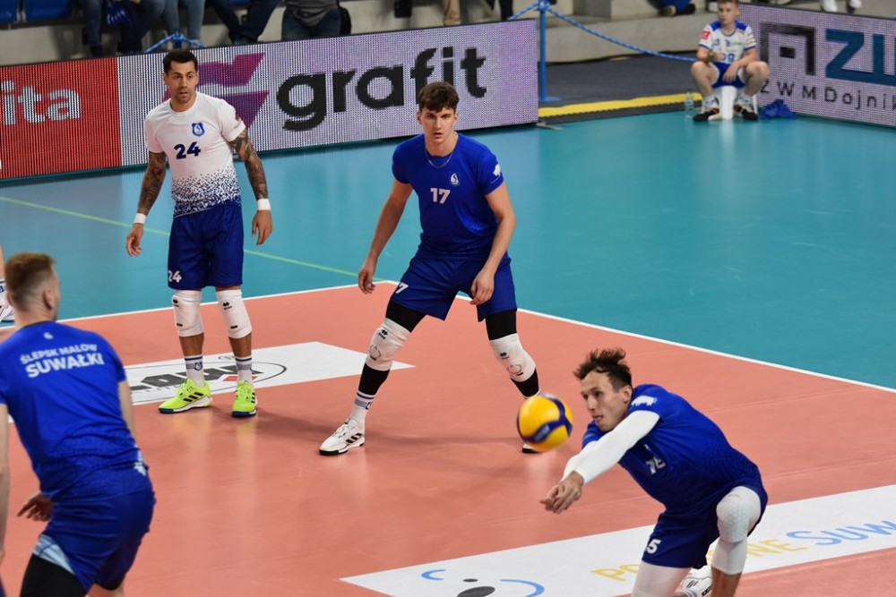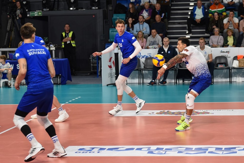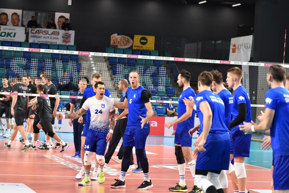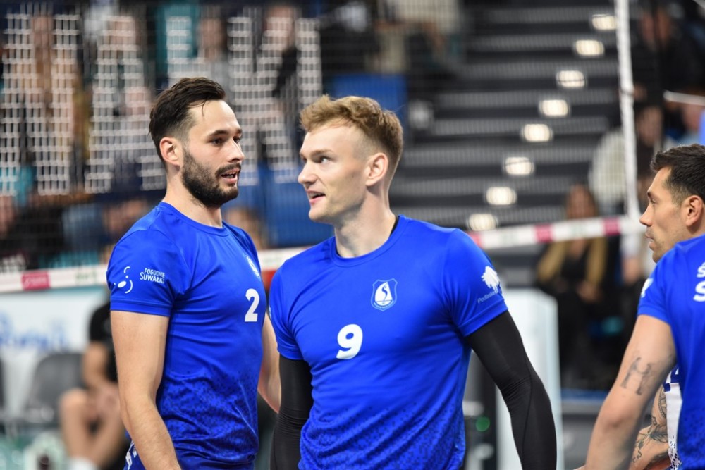 W suwalskim zespole zabrakÅ‚o wystÄ™pujÄ…cych w turniejach kwalifikacji olimpijskich (Polska dzisiaj wygraÅ‚a z HolandiÄ… 3:1 i awansowaÅ‚a na przyszÅ‚oroczne igrzyska w Paryżu!) ArgentyÅ„czyków Matiasa Sancheza i Joaquina Gallego oraz SÅ‚oweÅ„ca Zigi Sterna. WystÄ…piÅ‚ za to pozyskany tego lata serbski rozgrywajÄ…cy Maksim Buculjević, którego w koÅ„cówkach setów zmieniaÅ‚ junior SUKSS-u SuwaÅ‚ki Kacper Gibas. Przed suwalskÄ… publicznoÅ›ciÄ… udanie w biaÅ‚o-niebieskich barwach zadebiutowali też Å›rodkowi Konrad Stajer (przyszedÅ‚ z LUK Lublin) i notujÄ…cy powtórny debiut, bo w Åšlepsku graÅ‚ już w sezonie 2018/2019) Jakub Macyra (JastrzÄ™bski WÄ™giel) oraz przyjmujÄ…cy Bartosz Firszt (Enea Czarni Radom). ZagraÅ‚ też kolejny junior SUKSS, przyjmujÄ…cy Kaper Zackiewicz.