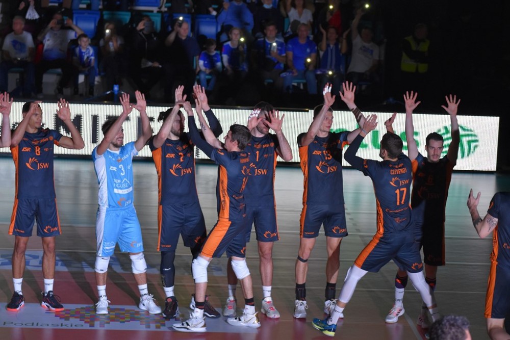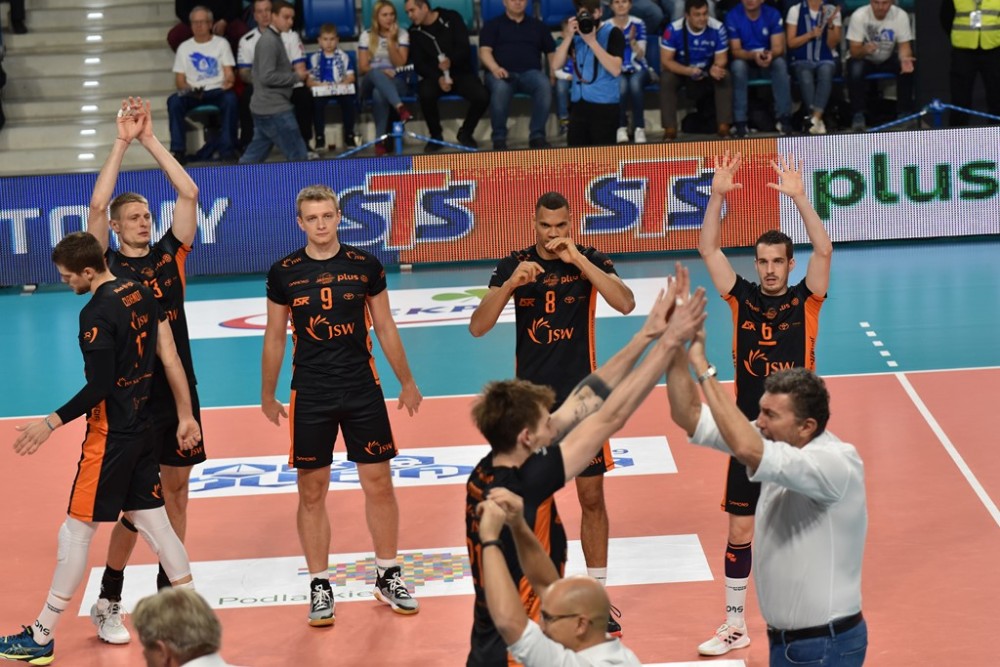 Jastrzębski Węgiel: Tomasz Fornal (8), Stephen Boyer (14), Jurij Gladyr (7), Łukasz Wiśniewski (5), Trevor Clevenot (15), Benjamin Toniutti (1) – Jakub Popiwczak libero oraz Jan Hadrava (2), Eemi Tervaportti