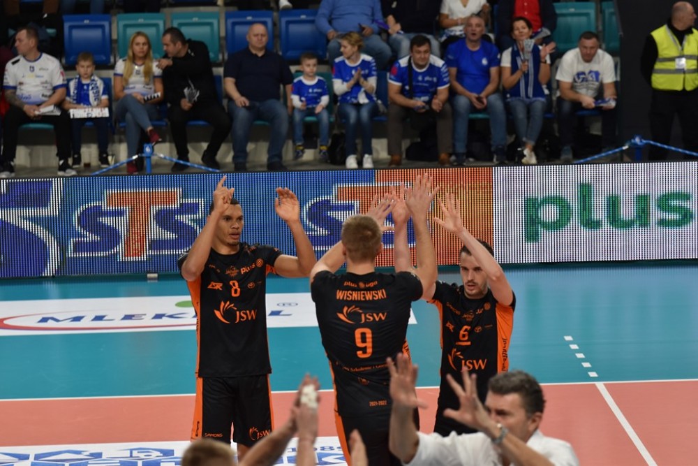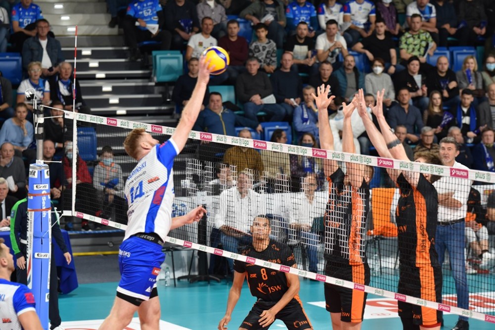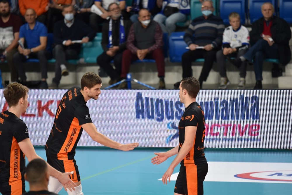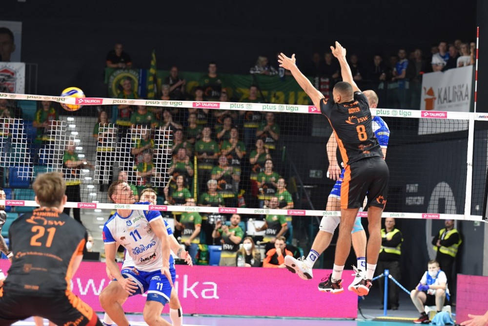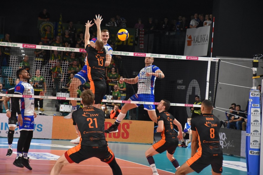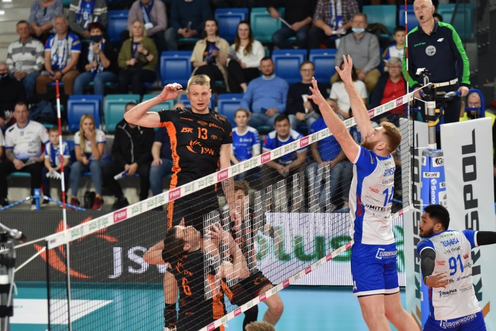 Przy lżejszych zagrywkach zawodników suwalskiej drużyny i dobrym odbiorze swoich kolegów, sprowadzony tego lata do Jastrzębia z ZAKSY francuski rozgrywający Benjamin Toniutti dogrywał na skrzydła do swoich kolegów, z którym w Tokio sięgnął po mistrzostwo olimpijskie. Przy dobrej, mylącej suwalski blok wystawie, Stephen Boyer z prawego i wybrany MVP spotkania Trevor Clevenot z lewego skrzydła atakowali ponad albo obijali ręce naszych zawodników. Kiedy zaś gracze Jatrzębskiego przyjmowali idealnie, piłka błyskawicznie leciała do Jurija Gładyra bądż Łukasza Wiśniewskiego, którzy ze środka wbijali gwoździe w parkiet Suwałki Areny.