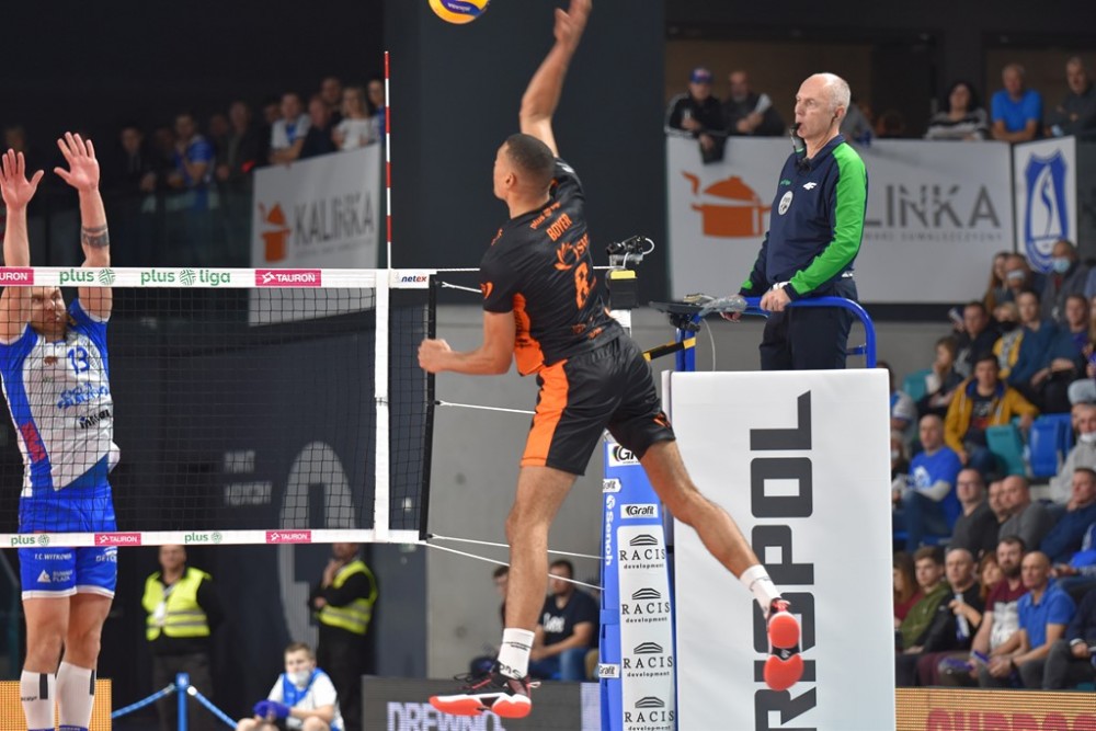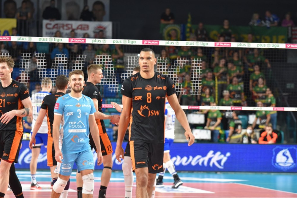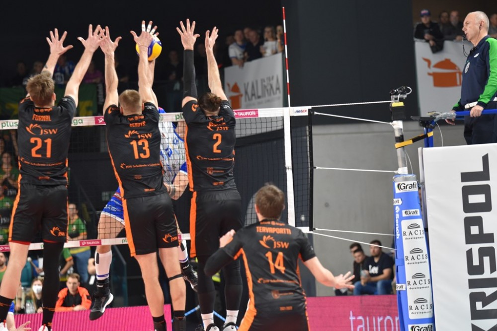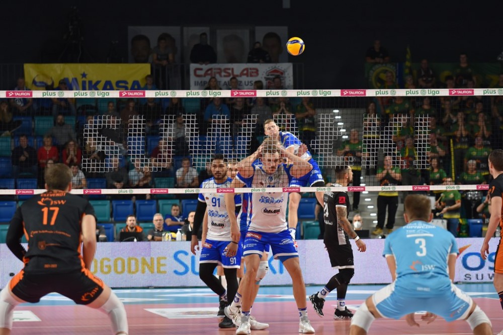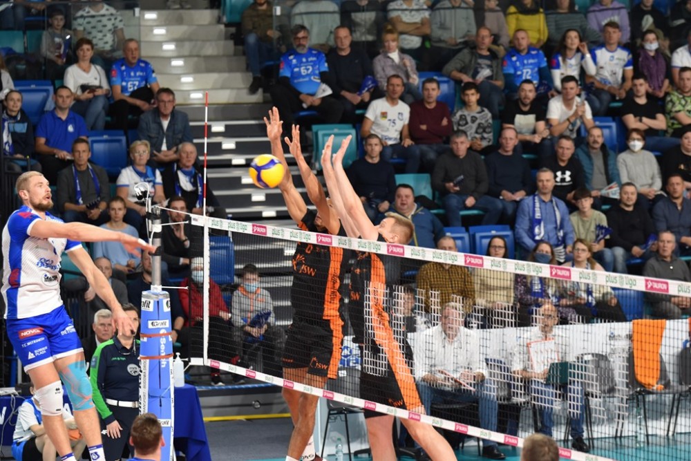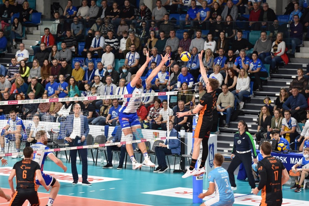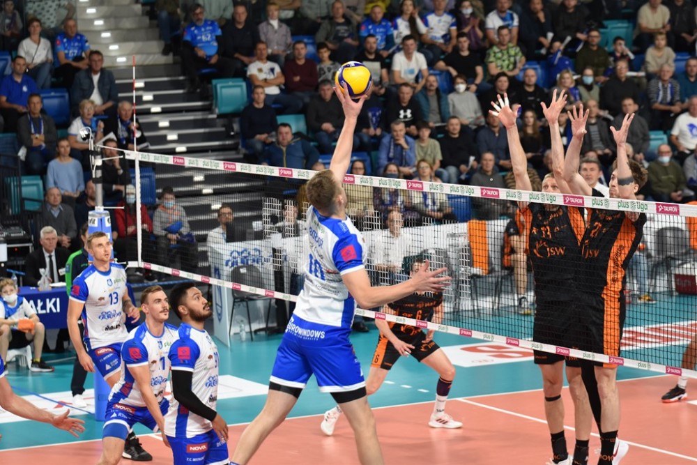 Przy lżejszych zagrywkach zawodników suwalskiej drużyny i dobrym odbiorze swoich kolegów, sprowadzony tego lata do Jastrzębia z ZAKSY francuski rozgrywający Benjamin Toniutti dogrywał na skrzydła do swoich kolegów, z którym w Tokio sięgnął po mistrzostwo olimpijskie. Przy dobrej, mylącej suwalski blok wystawie, Stephen Boyer z prawego i wybrany MVP spotkania Trevor Clevenot z lewego skrzydła atakowali ponad albo obijali ręce naszych zawodników. Kiedy zaś gracze Jatrzębskiego przyjmowali idealnie, piłka błyskawicznie leciała do Jurija Gładyra bądż Łukasza Wiśniewskiego, którzy ze środka wbijali gwoździe w parkiet Suwałki Areny.