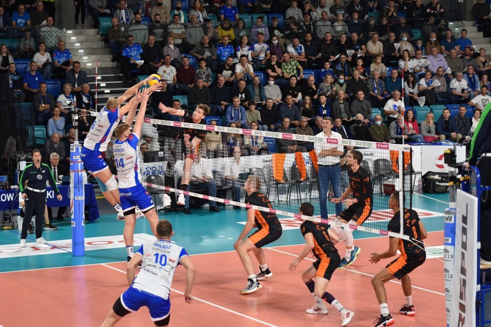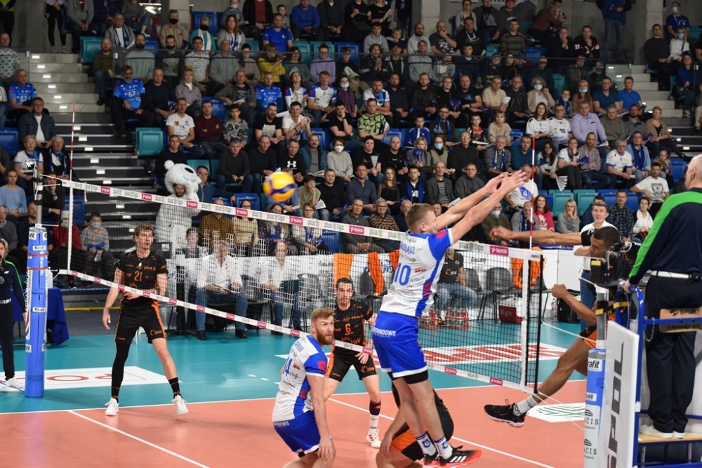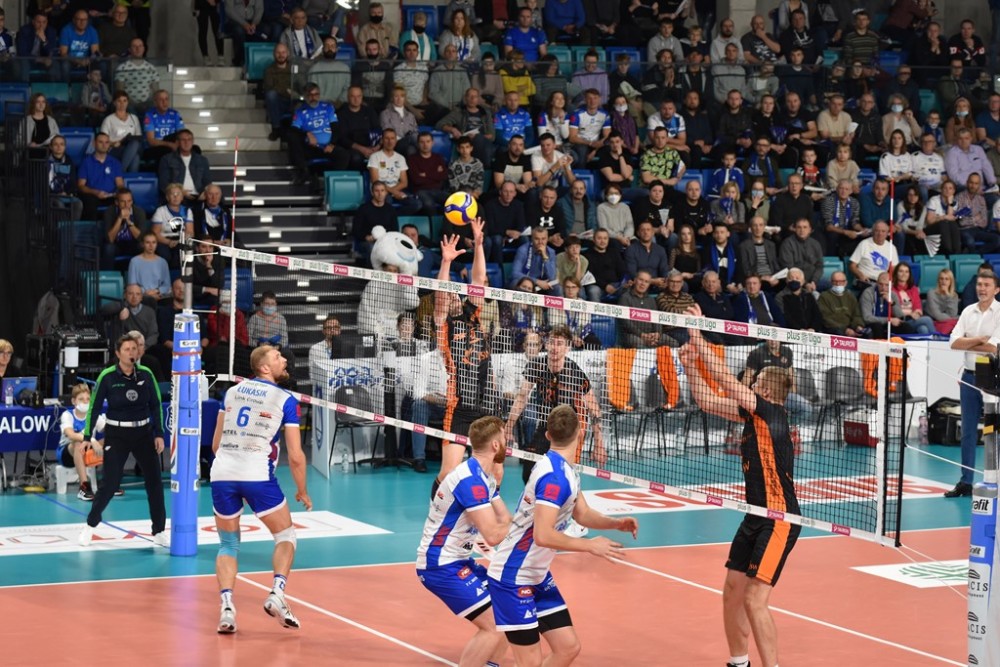 Biało-Niebiescy, wśród których w końcówce na chwile pokazywali się Kevin Klinkenberg, Łukasz Rudzewicz i Jakub Ziobrowski, podgonili jeszcze na 19:21 i 21:23, ale zaraz goście mieli setbola. Wykorzystał go reprezentał Polski Tomasz Fornal, który w akcji jeden na jednego pokonał Bartłomieja Bołądzia. Pierwszy, najbardziej zacięty set zakończył się rezultatem 22:25.