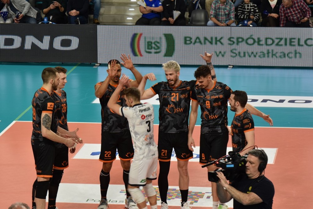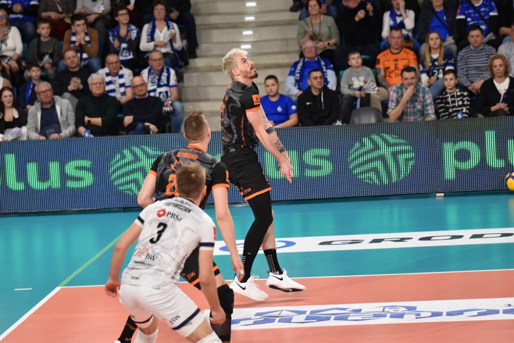 Sukces dodaÅ‚ gospodarzom animuszu. W trzeciej części znakomicie blokowali i bronili, nie pozwalali mistrzom Polki koÅ„czyć pierwszych akcji i znowu uciekli na kilka punktów. Niestrudzenie atakowaÅ‚ Bartosz Filipiak, Matias Sanchez coraz częściej uruchamiaÅ‚ Å›rodkiem Konrada Stajera i Jakuba MacyrÄ™, bardzo dobrÄ… zmianÄ™ daÅ‚ Bartosz Firszt.
