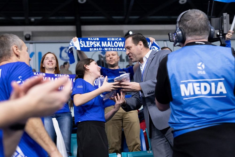W drugiej partii walka punkt za punkt trwała do stanu 8:7, a potem sprawy w swoje ręce wziął Paweł Halaba, wybrany MVP spotkania. Skrzydłowy Ślepska zaserwował kolejnego asa, wyrzucony za antenkę sprytnie zaatakował lewą ręką, blokiem punkty dołożyli Bartosz Filipiak oraz Konrad Stajer, kolejnymi asami popisali się Bartosz Firszt, a także Konrad Stajer i gospodarze odjechali 22:14. Męczarnie gości trudnym atakiem po skosie zakończył Bartosz Filipiak. Slepsk Malow wygrał drugiego seta 25:18.